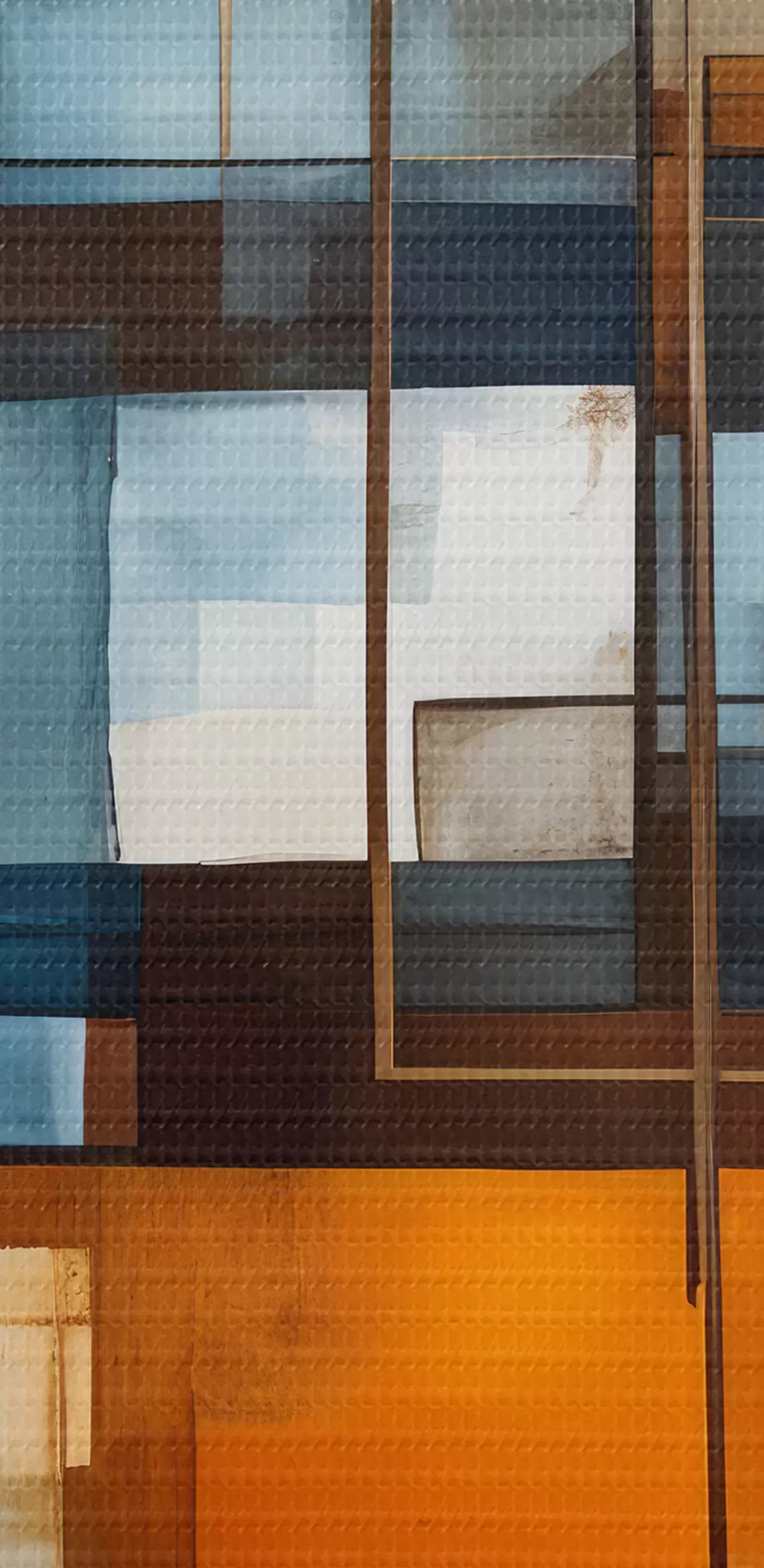 Cuadros Formas geométricas abstractas en tonos de azul, naranja y marrón que crean una composición minimalista moderna. Nr s40563