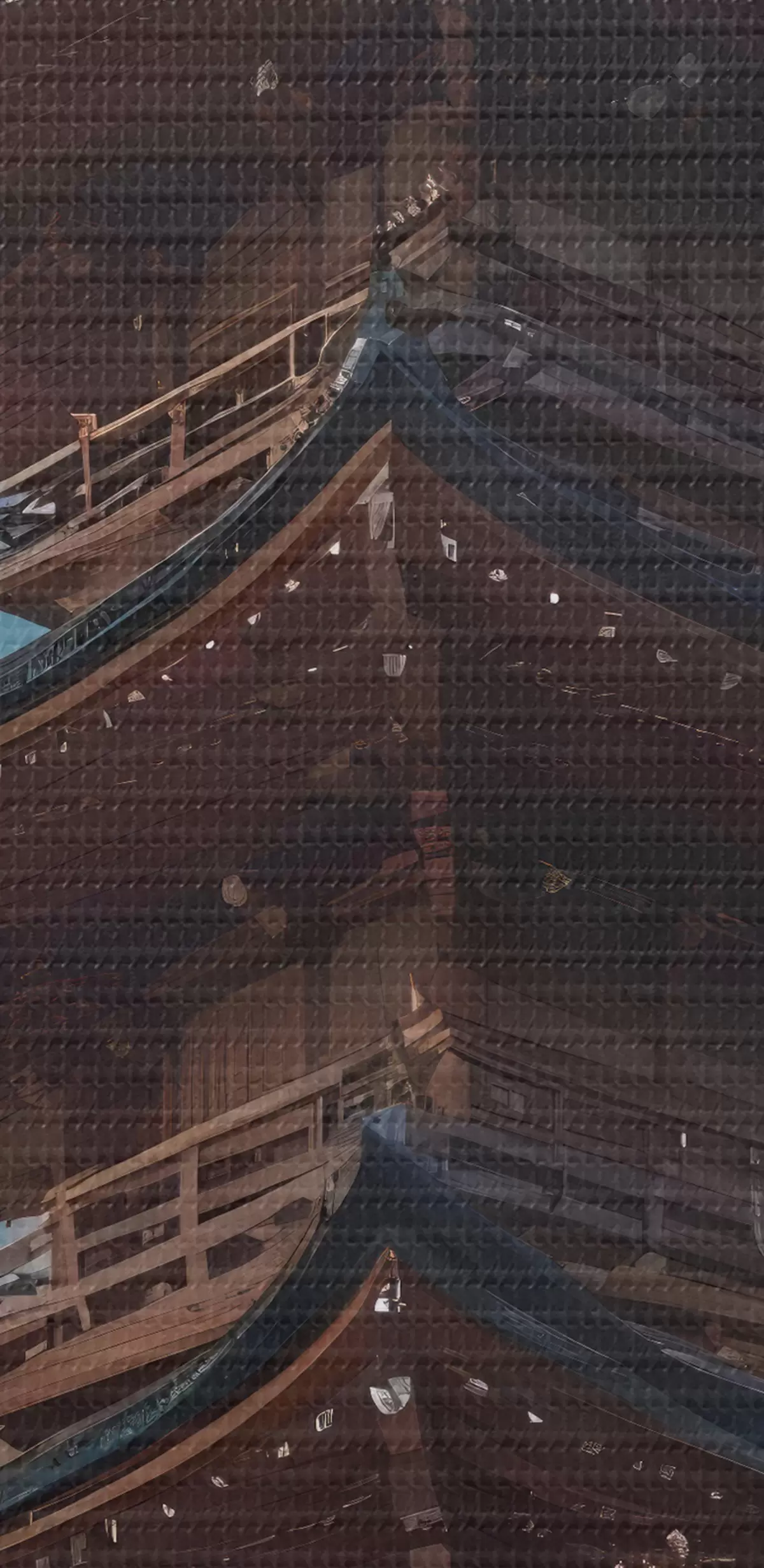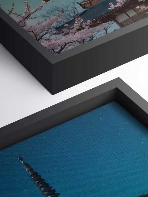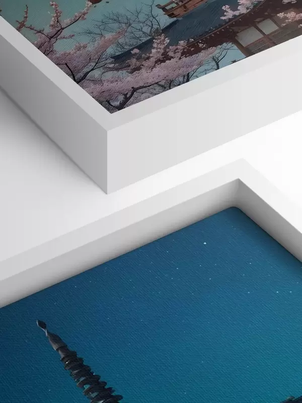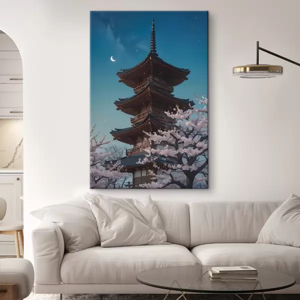 Cuadros Una pagoda tradicional japonesa con una luna creciente en el cielo y cerezos en flor Nr s40586