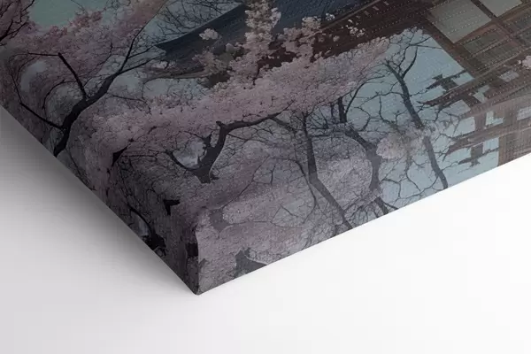 Cuadros Una pagoda tradicional japonesa con una luna creciente en el cielo y cerezos en flor Nr s40586