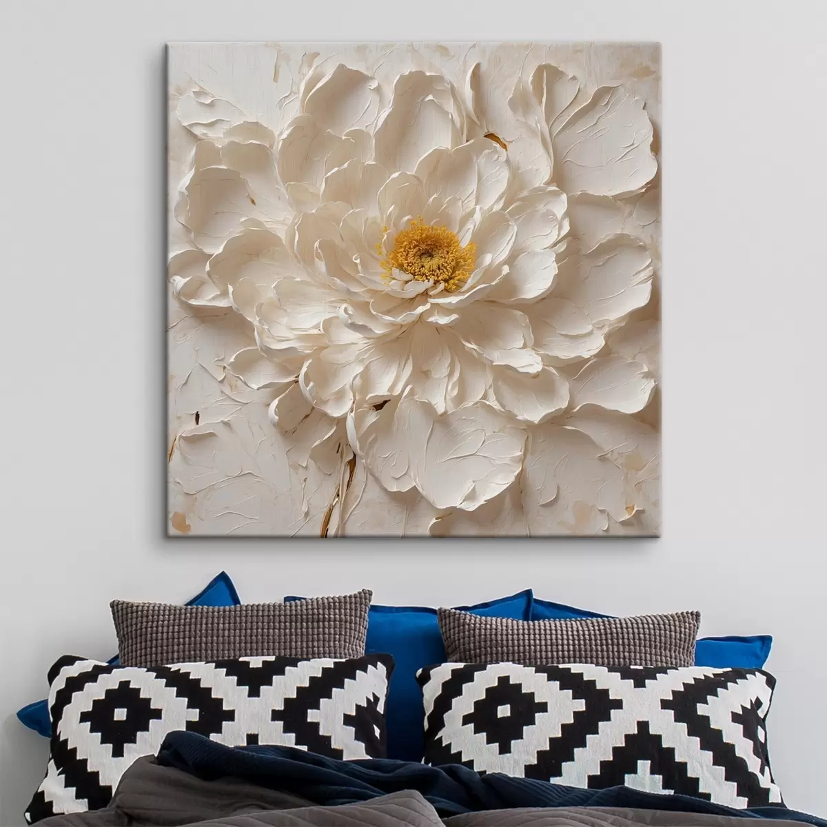 murales de pared Flor blanca al óleo sobre fondo blanco s40618