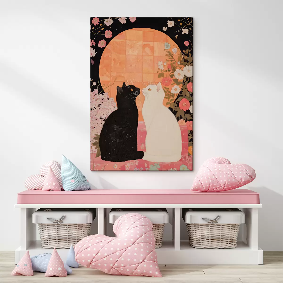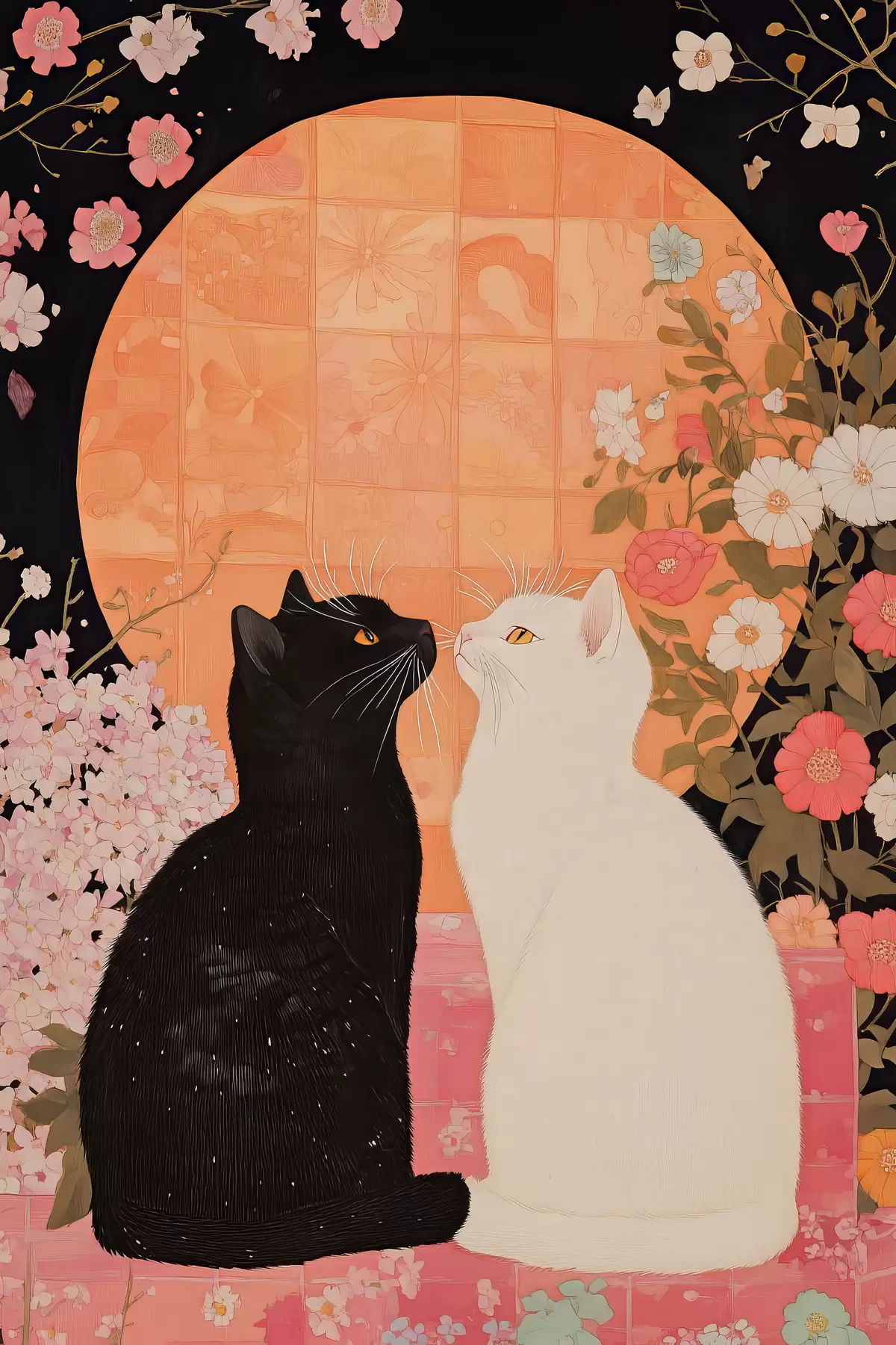 murales de pared Gato blanco y negro mirándose al atardecer s40669