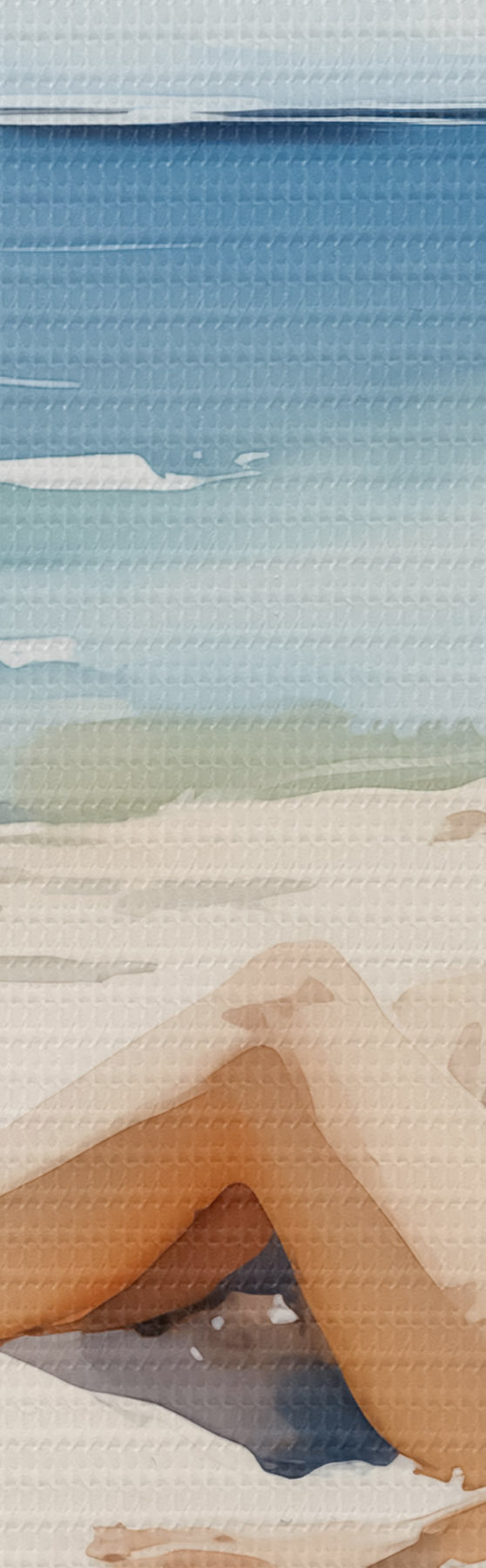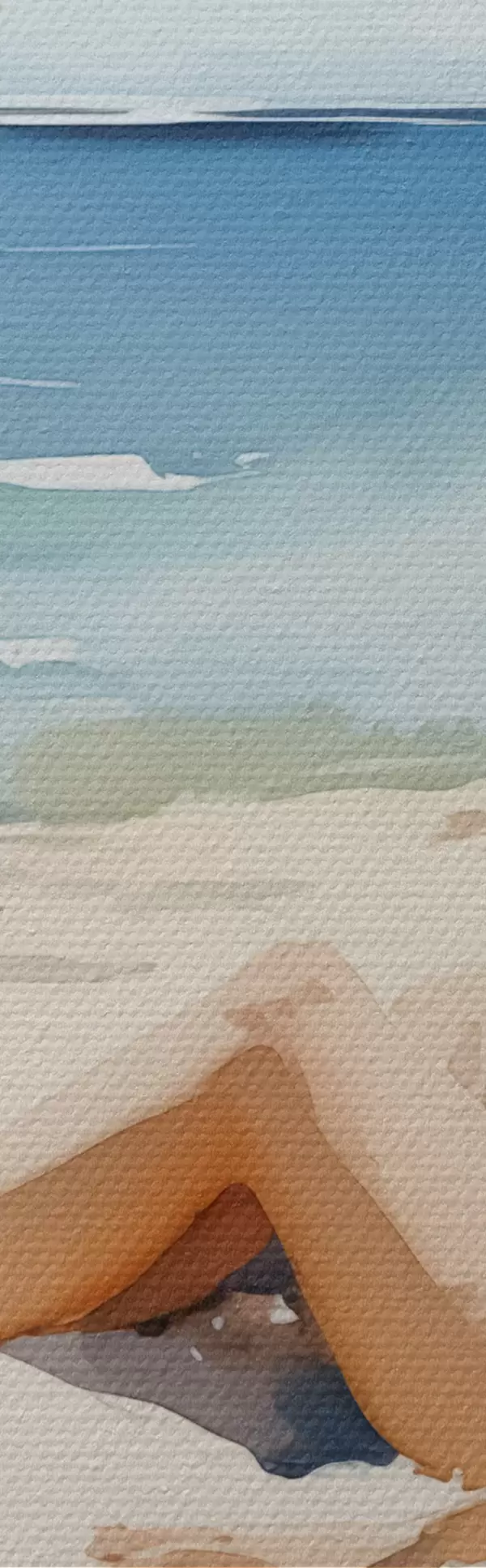 Cuadros Chica relajándose en la playa junto al mar acuarela Nr s40679