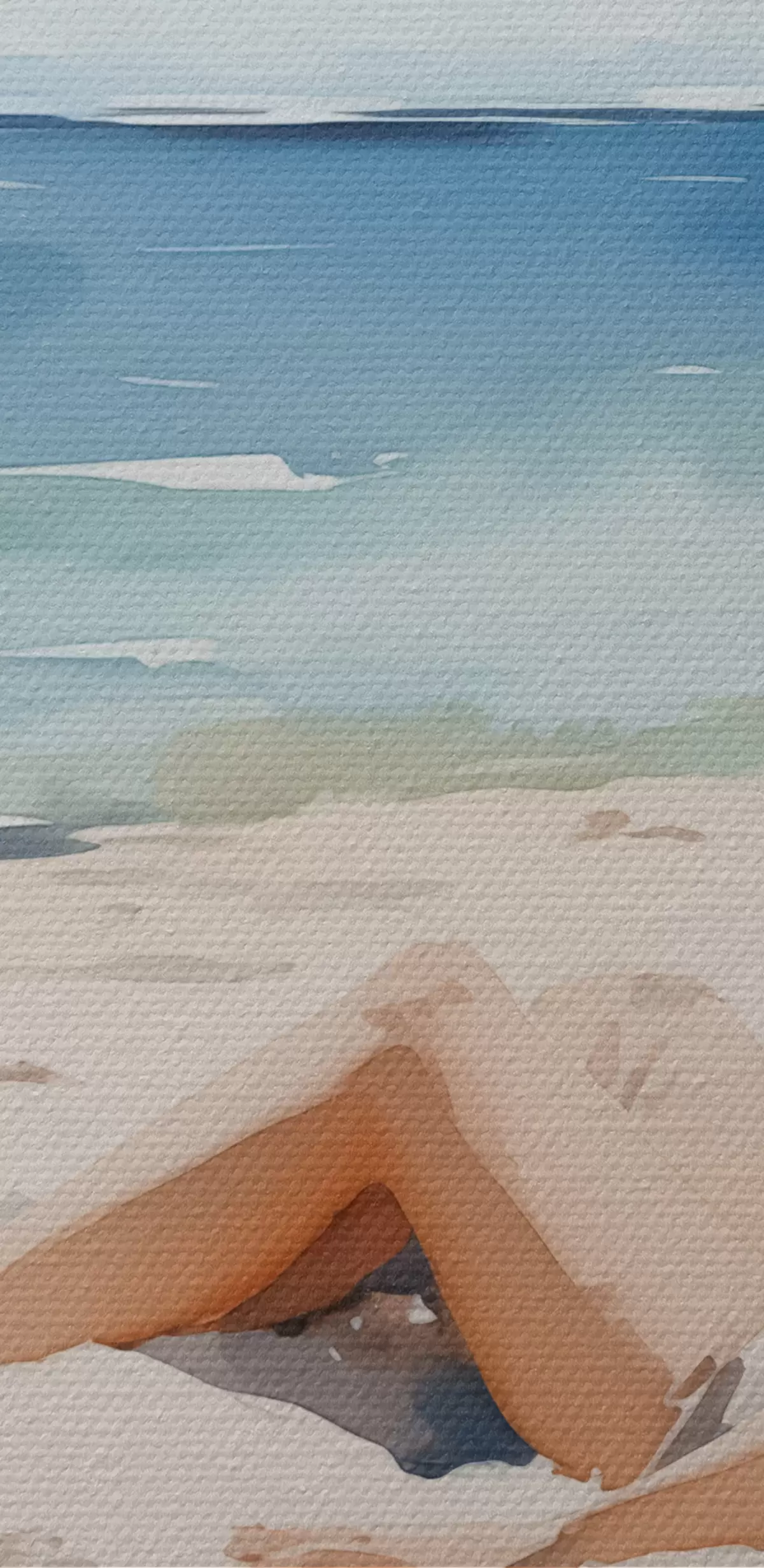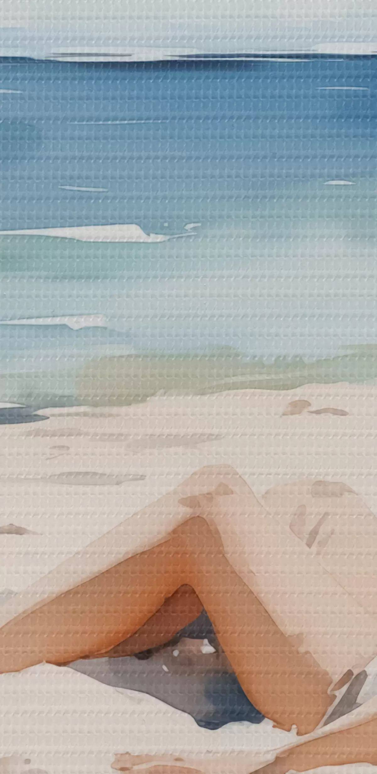 Cuadros Chica relajándose en la playa junto al mar acuarela Nr s40679