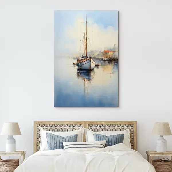 Cuadros Barco de pesca en el muelle en el mar acuarela húmeda Nr s40688