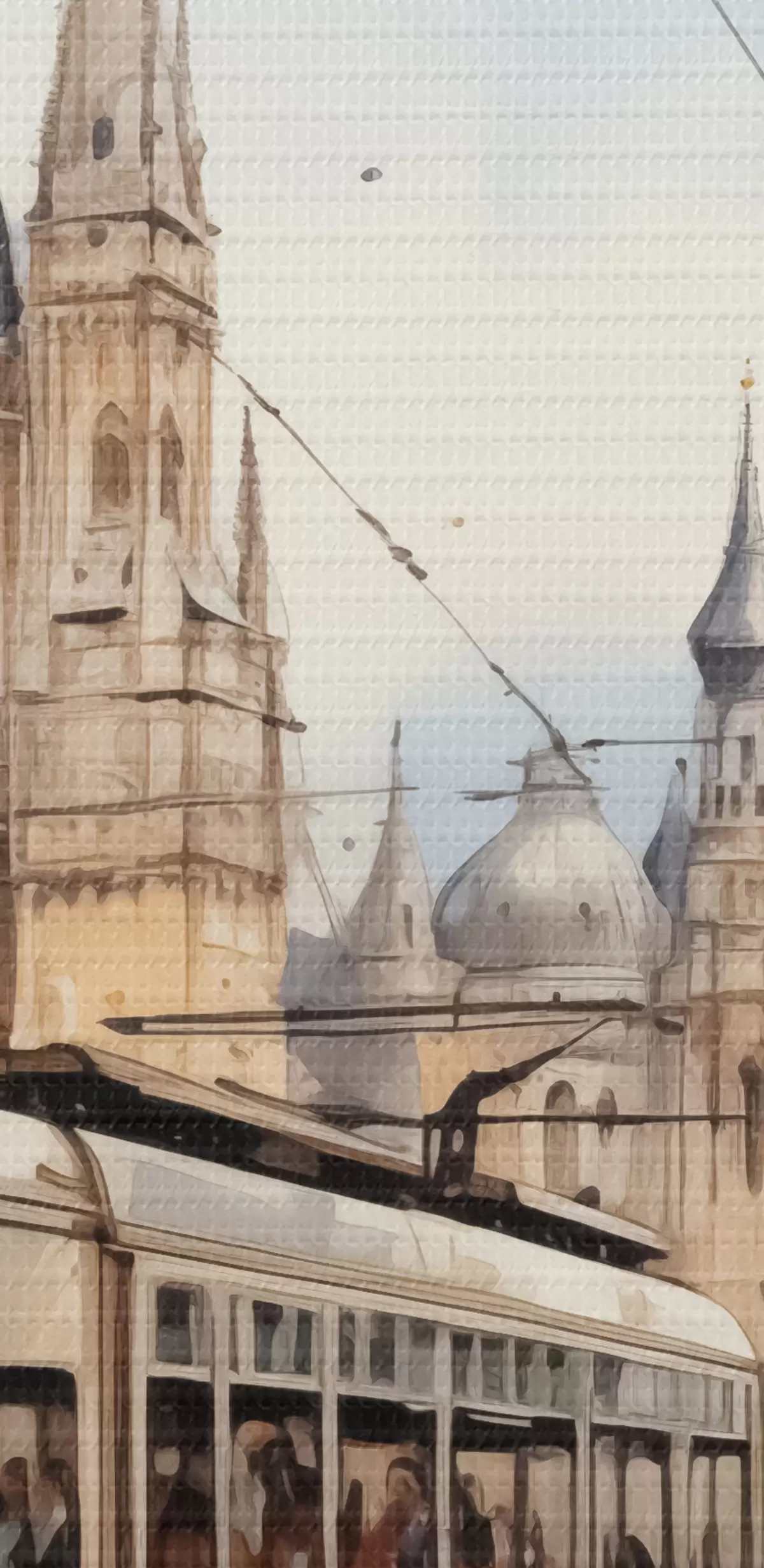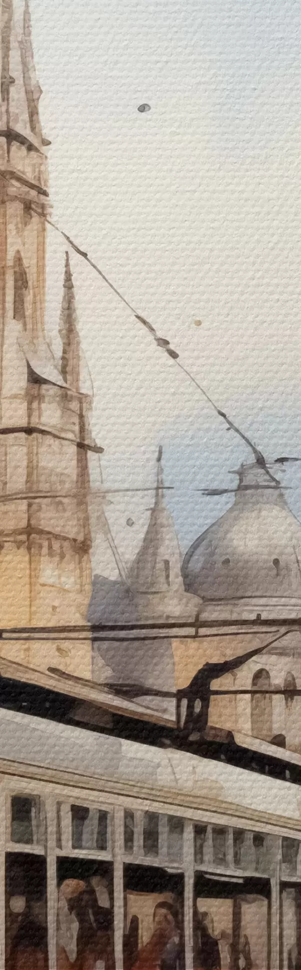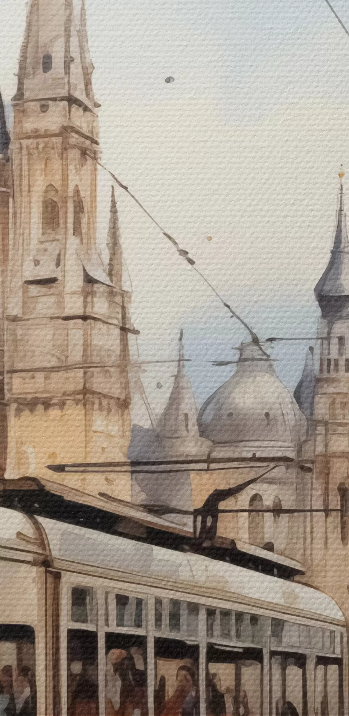 Cuadros Tranvía rojo en la calle de Viena acuarela Nr s40732