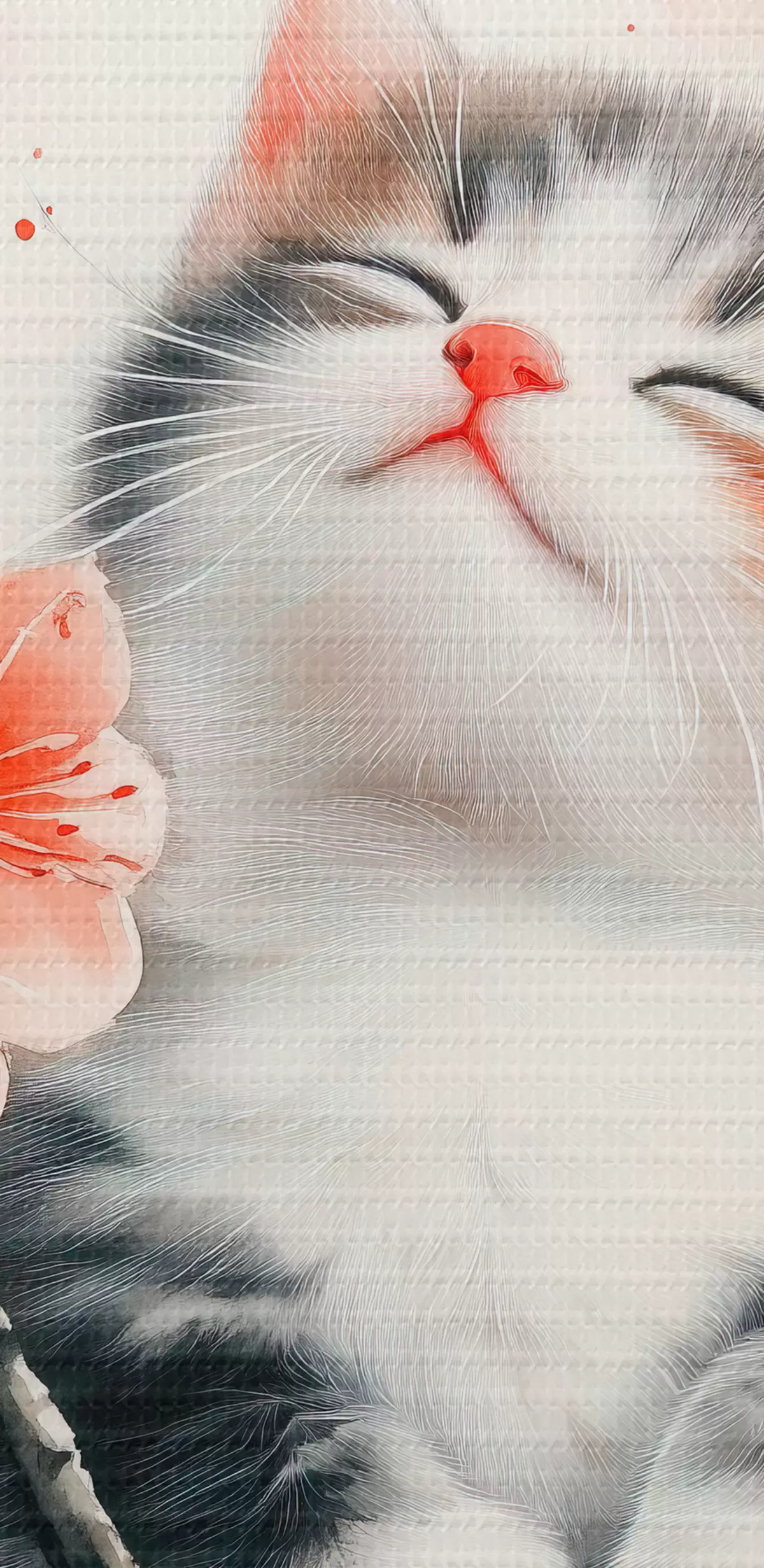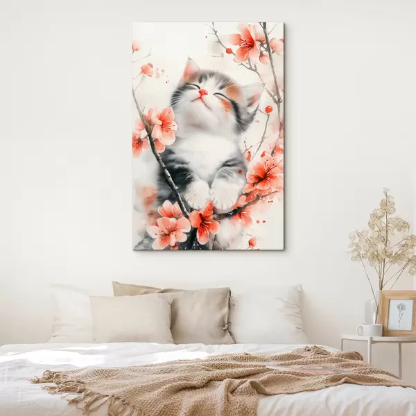 Cuadros Lindo gatito en una rama con flores Nr s40734