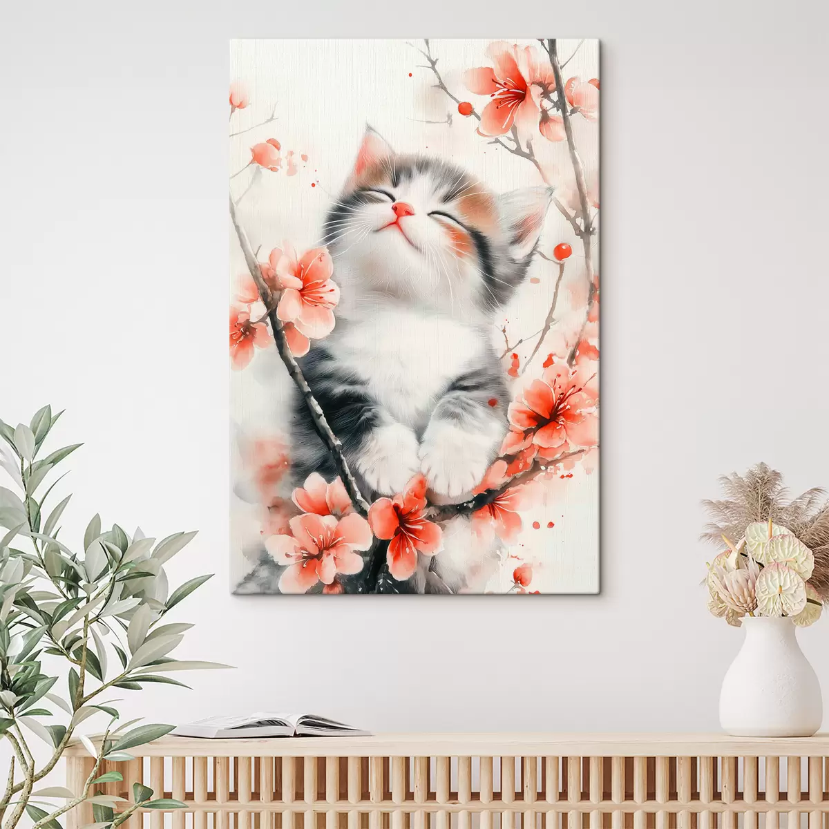 Cuadros Lindo gatito en una rama con flores Nr s40734