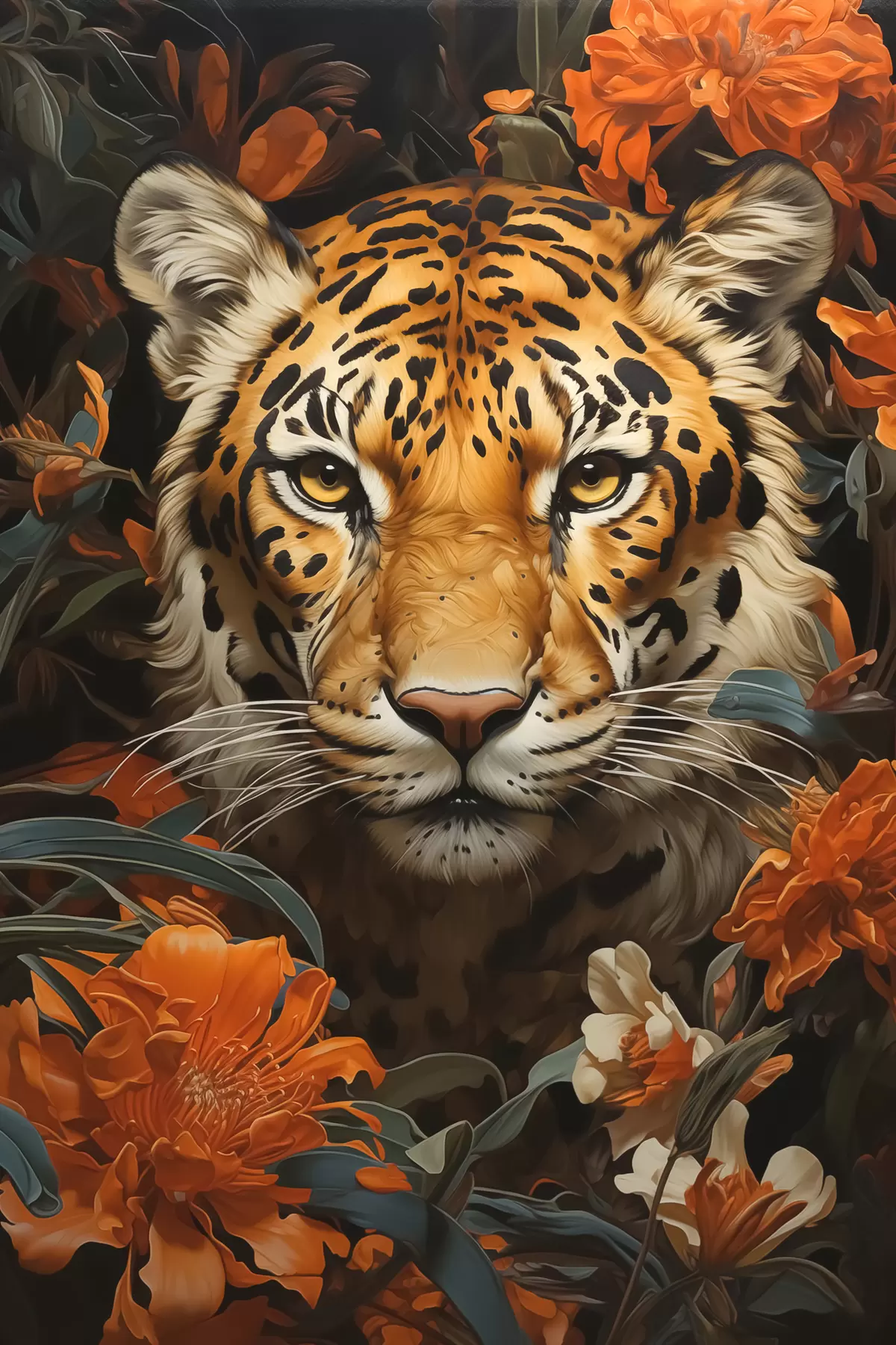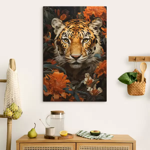 Cuadros Retrato de un tigre rodeado de flores tropicales Nr s40757