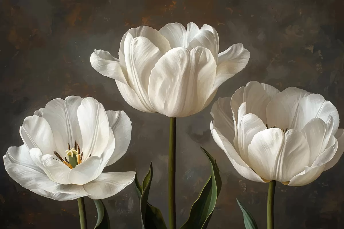 murales de pared Grandes flores de tulipán, tulipanes blancos s40792