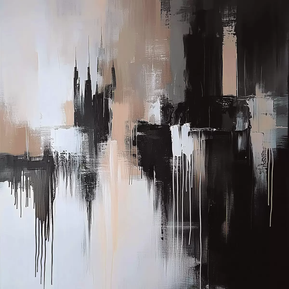Cuadros Abstracción en tonos negros y beige Nr s40794