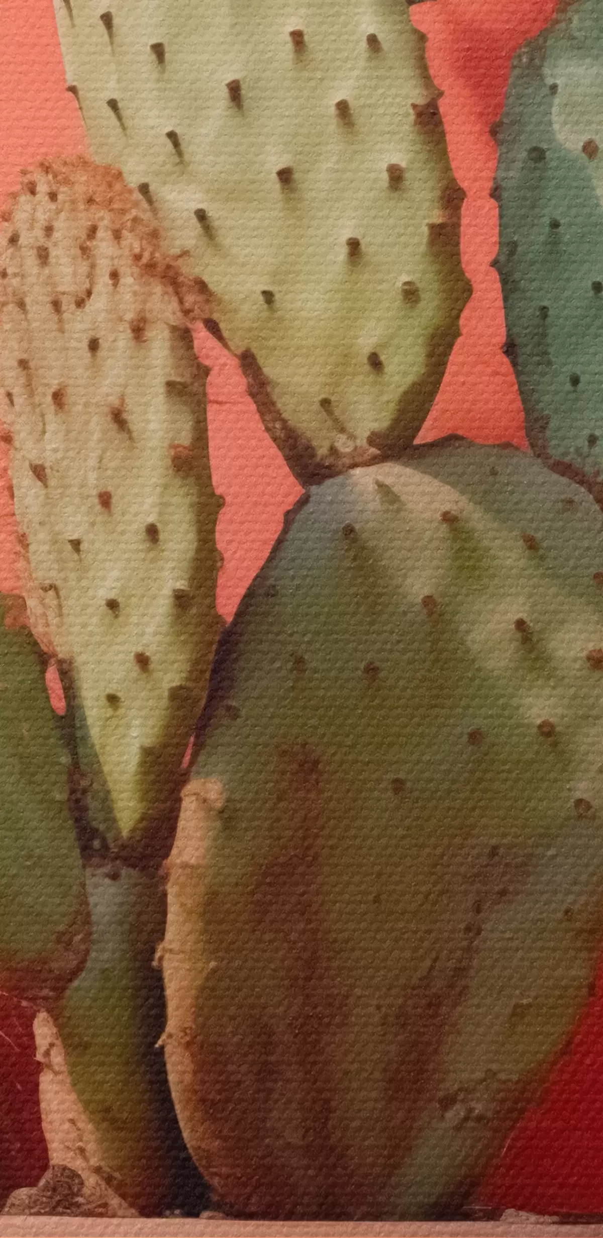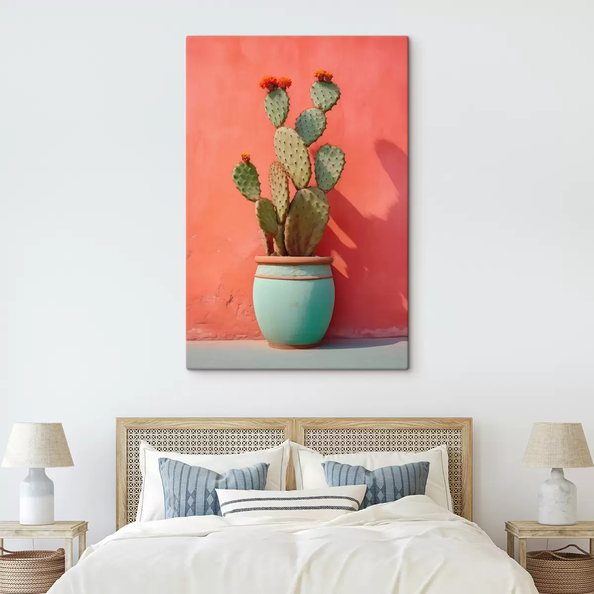 Cuadros Cactus en una maceta ligera contra una pared rosa rojiza Nr s40800