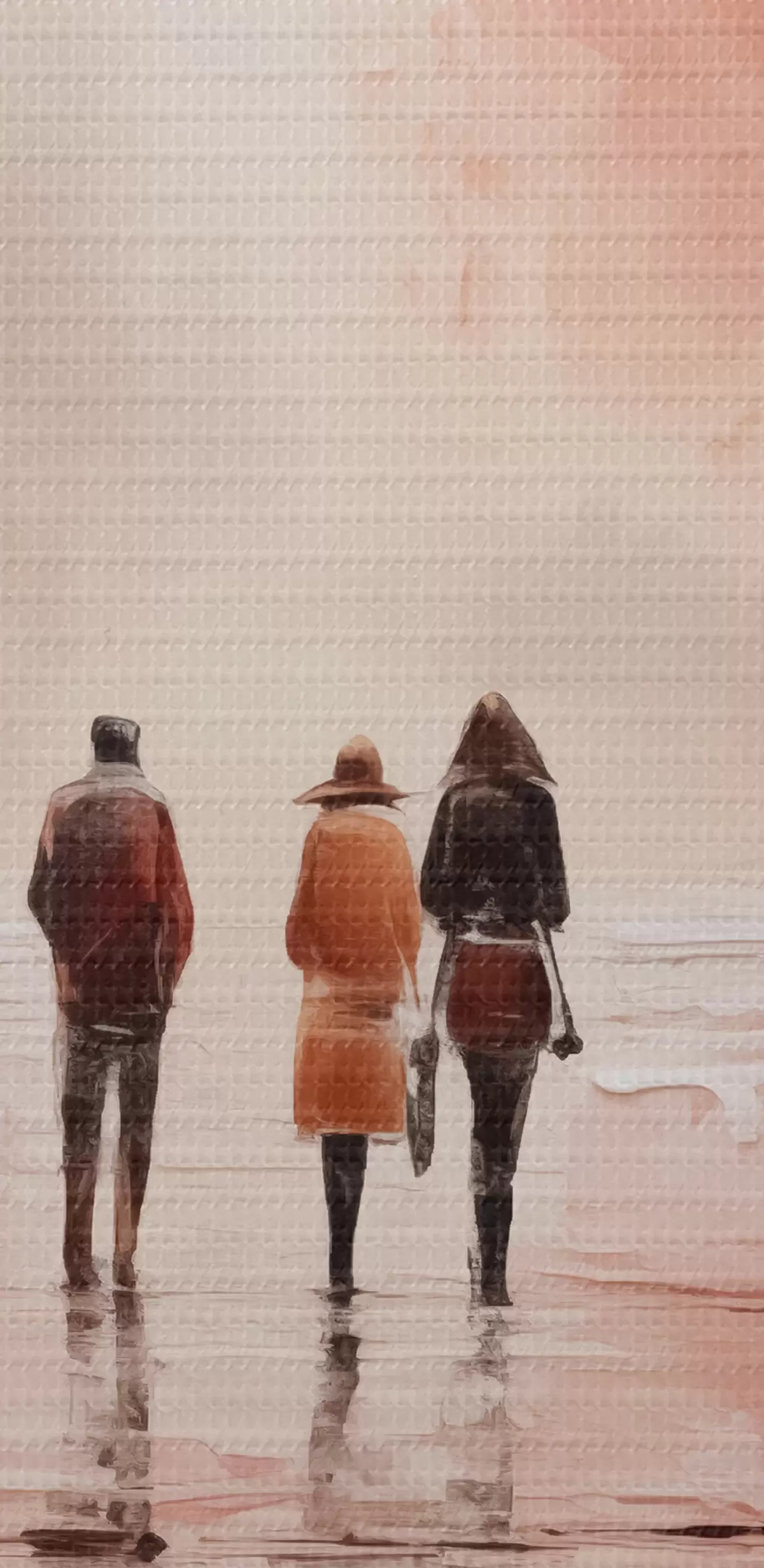 murales de pared La gente caminando en el parque abstracto, de color rojo rosa s40802