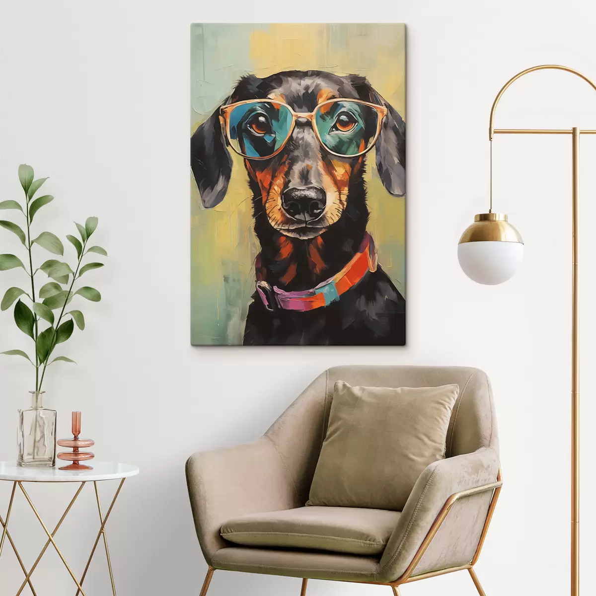 Cuadros Retrato de un perro salchicha negro con gafas Nr s40803