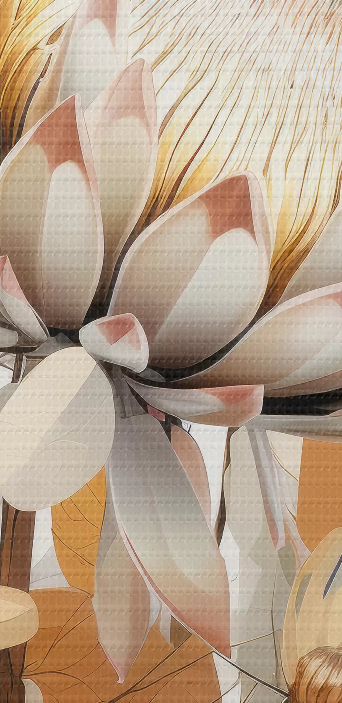 murales de pared Hermosas flores de protea con exuberantes hojas, suaves colores beige, algodón s40817