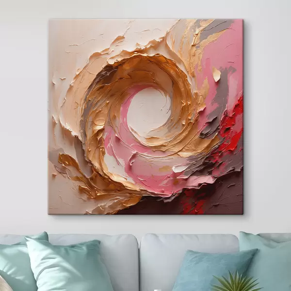 Cuadros Pintura al óleo abstracta con remolino rosa y amarillo Nr s40863
