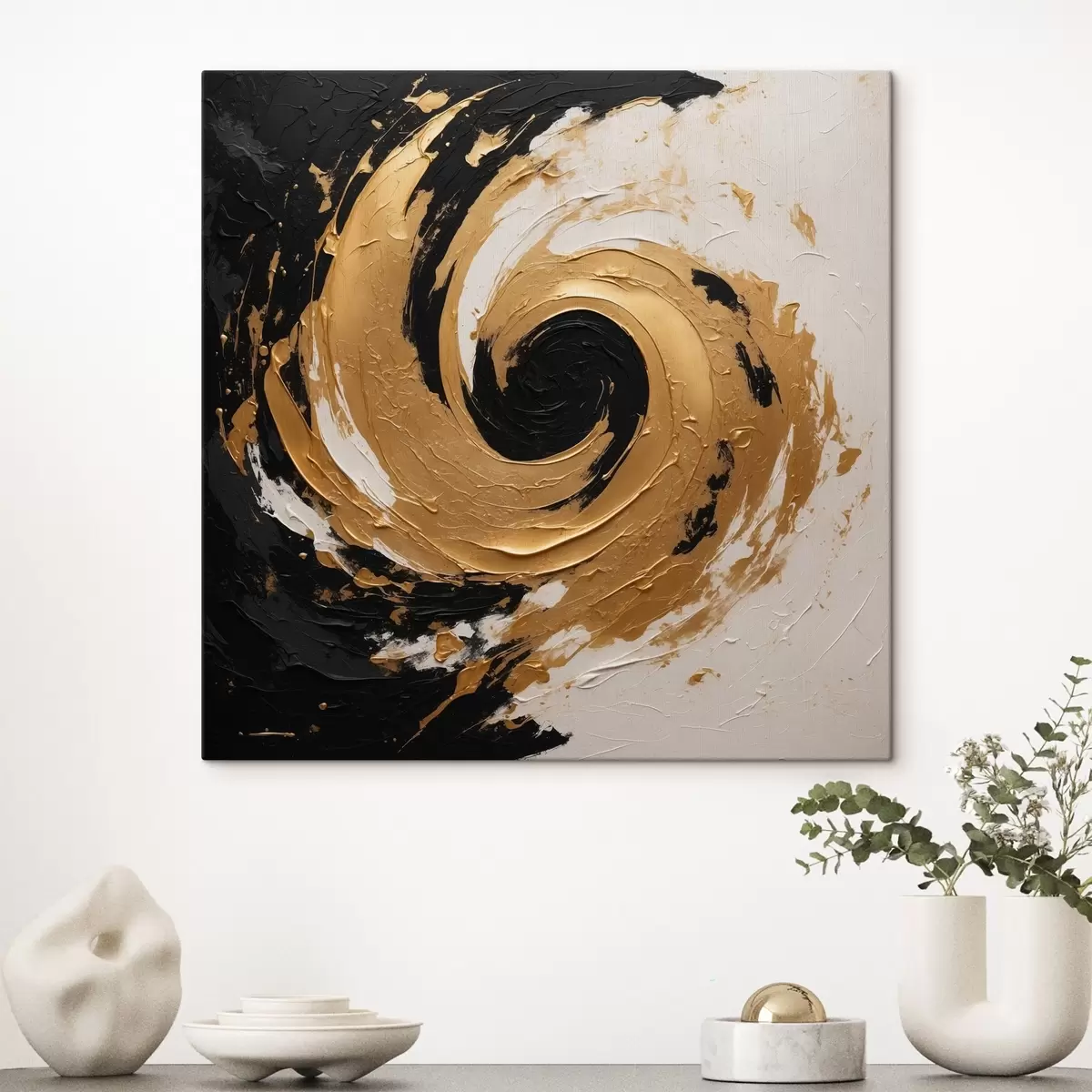 Cuadros Pintura al óleo abstracta con remolino negro y amarillo Nr s40864