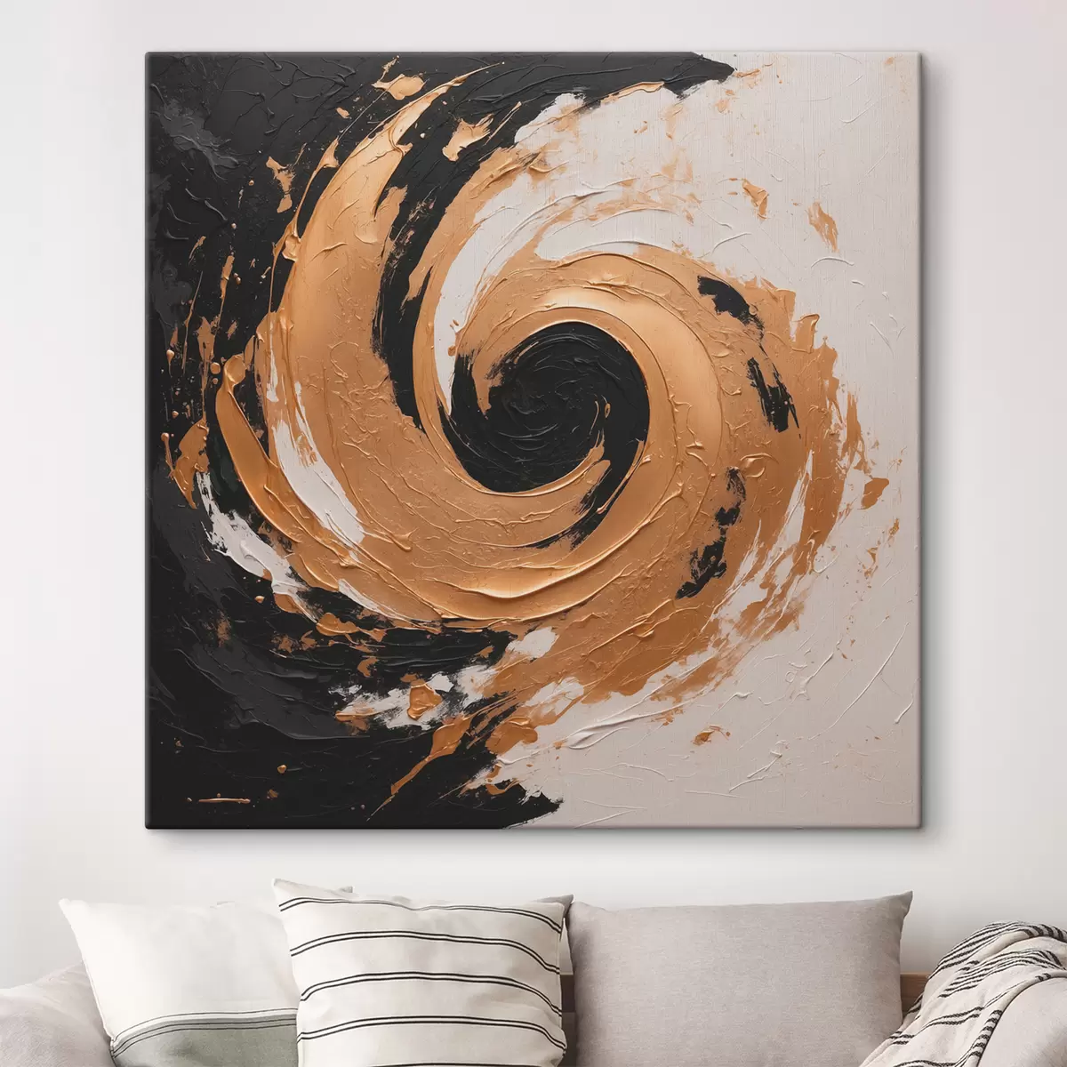 Cuadros Pintura al óleo abstracta con remolino negro y amarillo Nr s40864