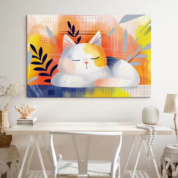 Cuadros Un simpático gato durmiendo entre plantas en estilo gráfico Nr s40956