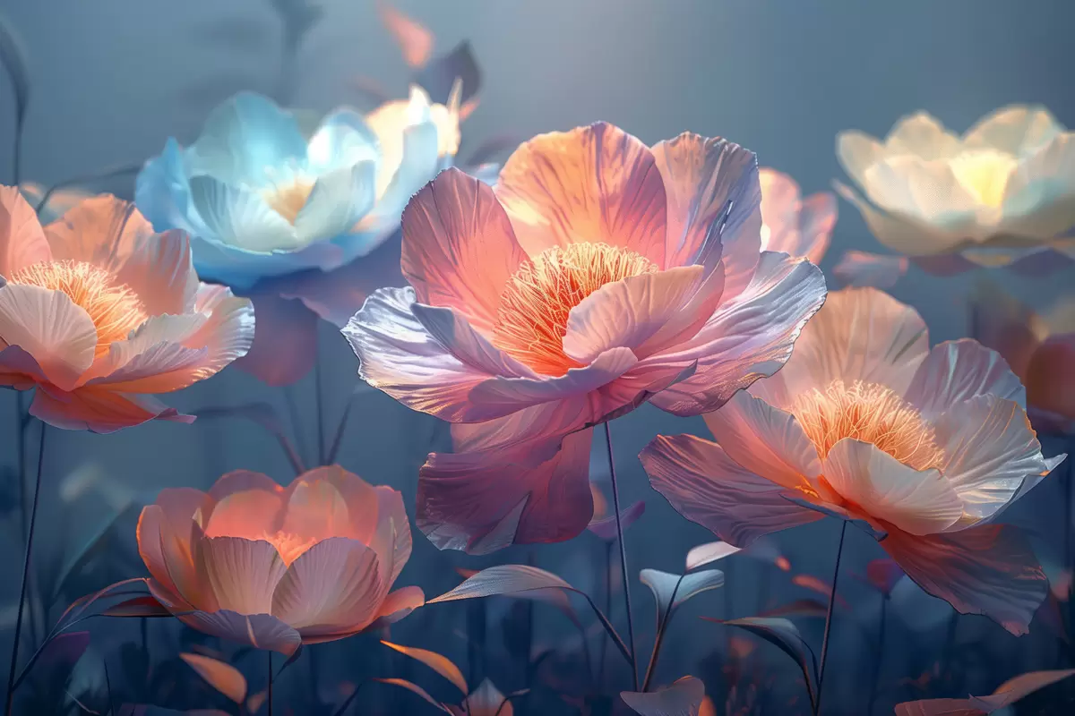 murales de pared Amapolas mágicas con un tinte azul  s40958