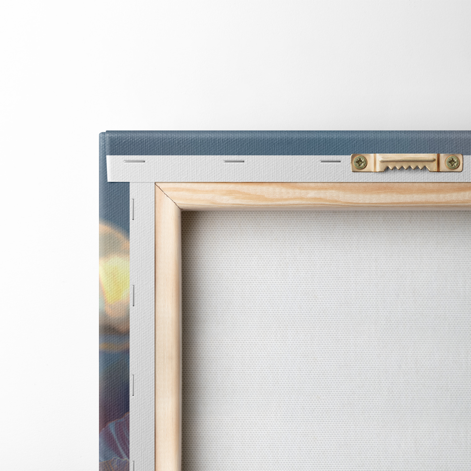 Vendemos cuadros en bastidor: se trata de un marco de madera sobre el que se extiende el lienzo. Este cuadro no necesita marco; puedes colgarlo directamente en la pared.