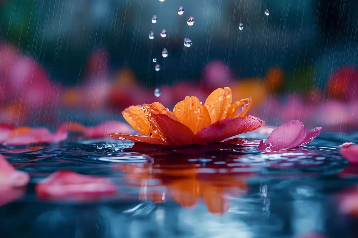 murales de pared Un nenúfar con gotas de lluvia s40977