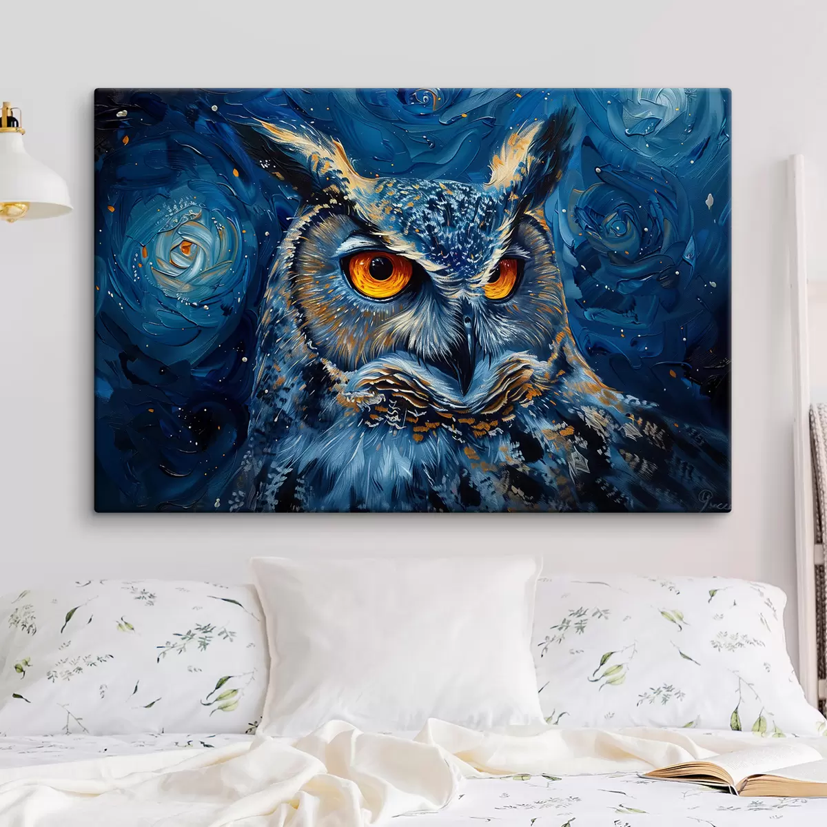 Cuadros La mirada de un búho en la noche con un cielo a lo Van Gogh Nr s40982