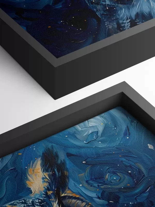 Vendemos cuadros en bastidor: se trata de un marco de madera sobre el que se extiende el lienzo. Este cuadro no necesita marco; puedes colgarlo directamente en la pared.