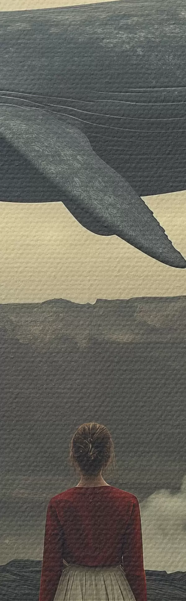 Cuadros Chica sobre lava con una gran ballena voladora en el cielo Nr s40986