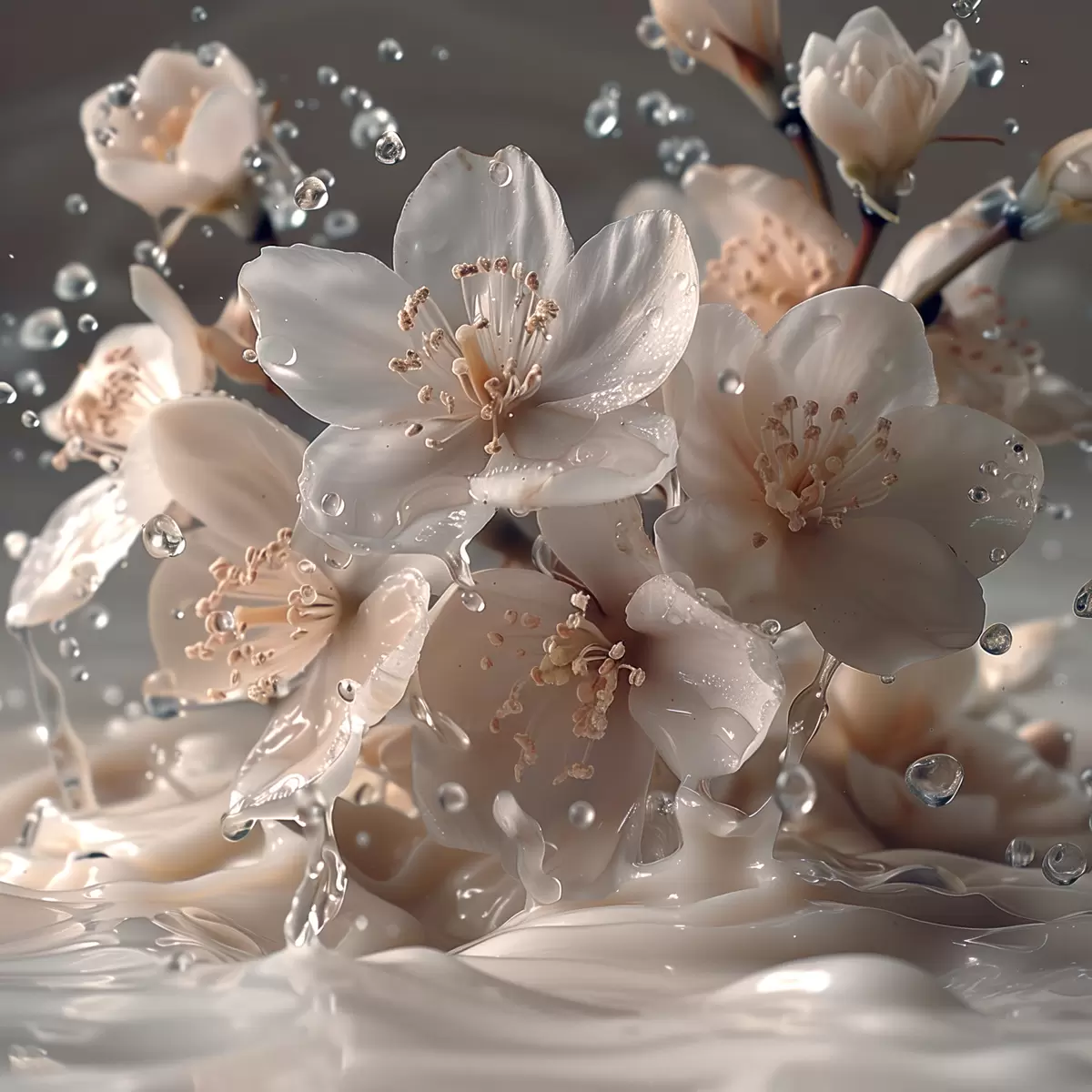 Cuadros Flores de jazmín en un torbellino de gotas Nr s41003