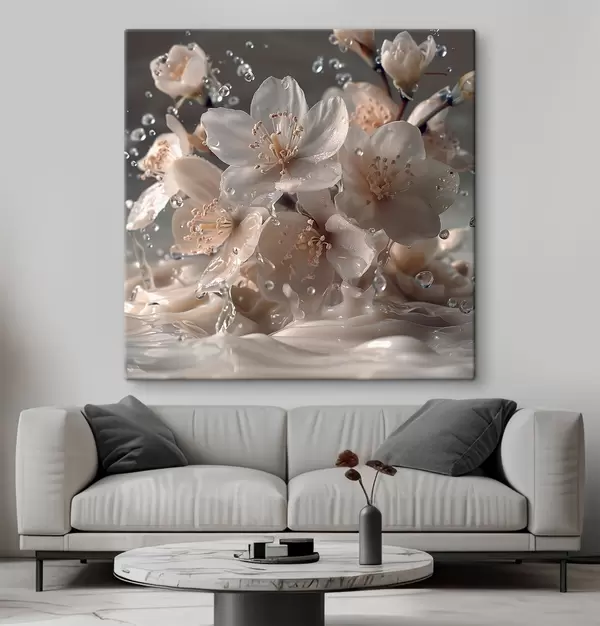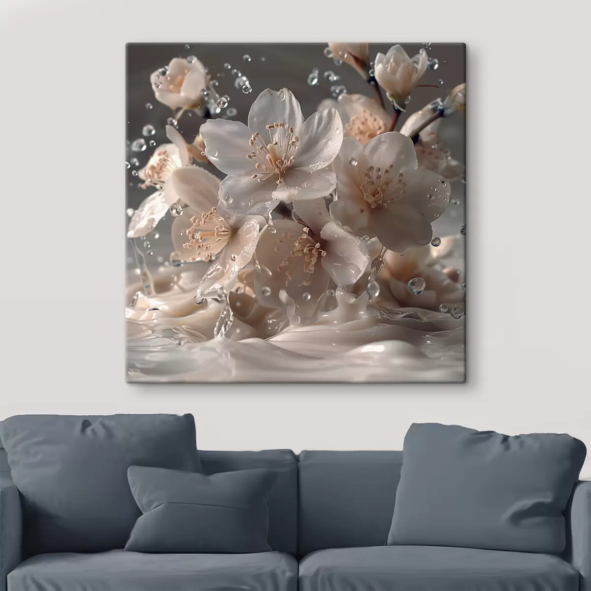 Cuadros Flores de jazmín en un torbellino de gotas Nr s41003