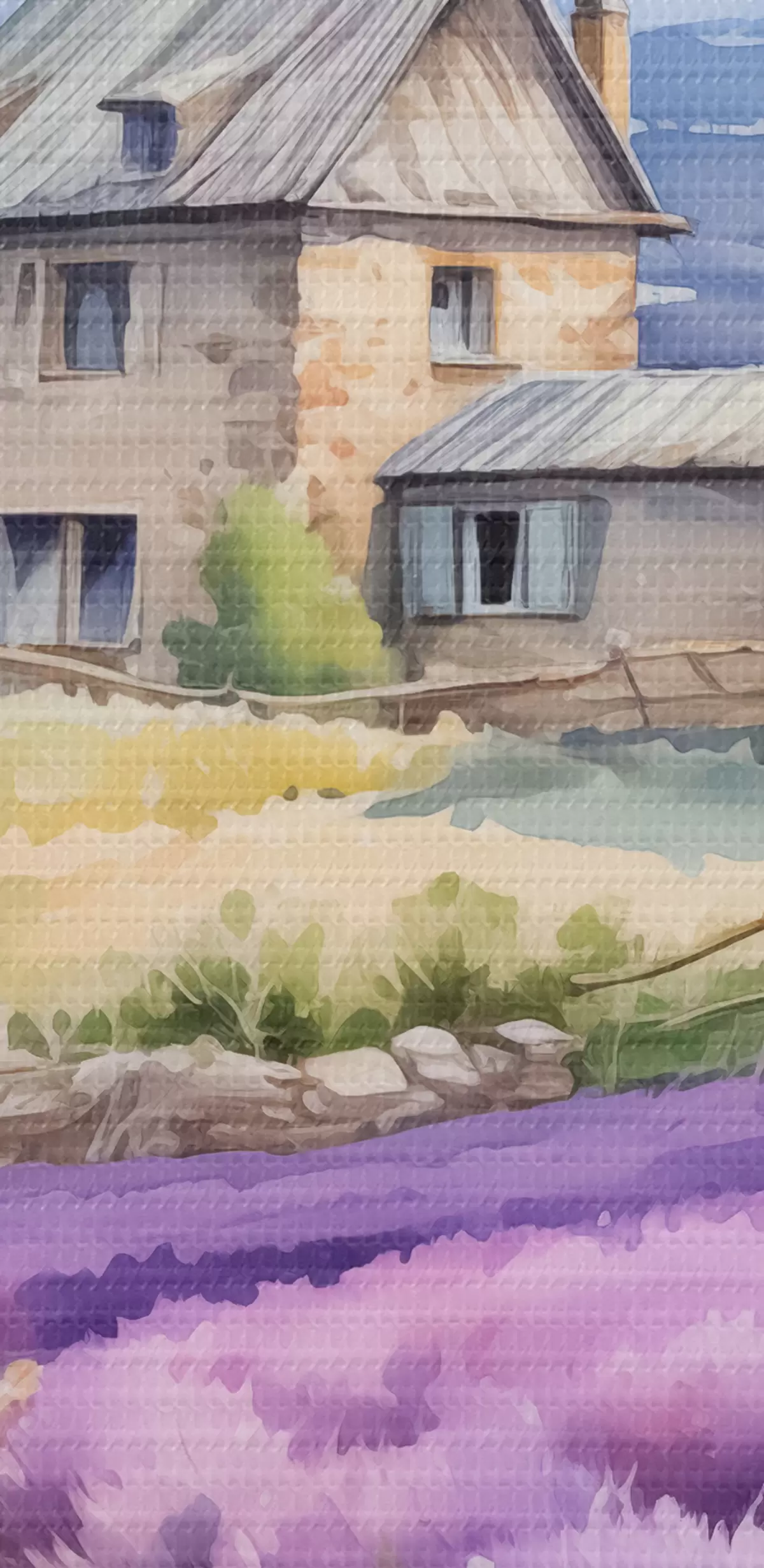Cuadros Casa de campo con montañas al fondo cerca de un campo de lavanda Nr s41012