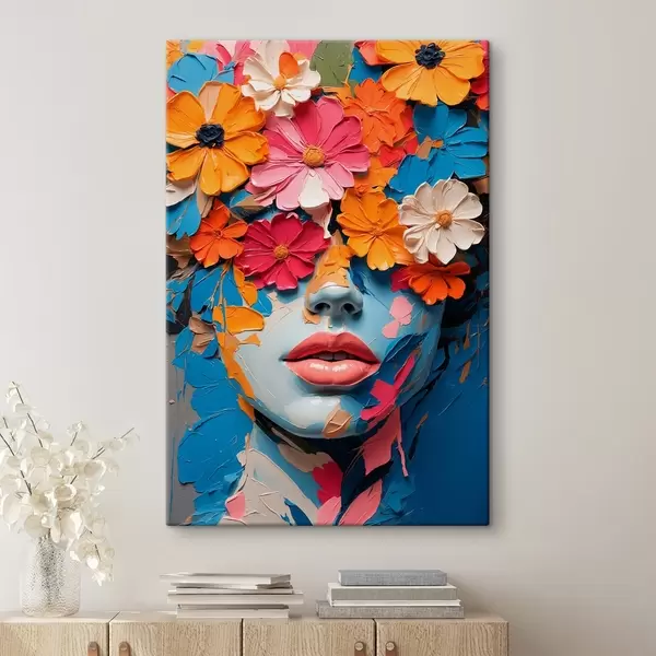 Cuadros Rostro de niña al óleo cubierto de flores Nr s41023