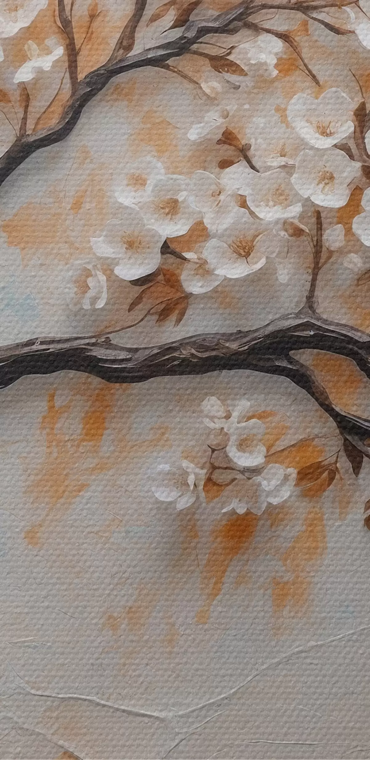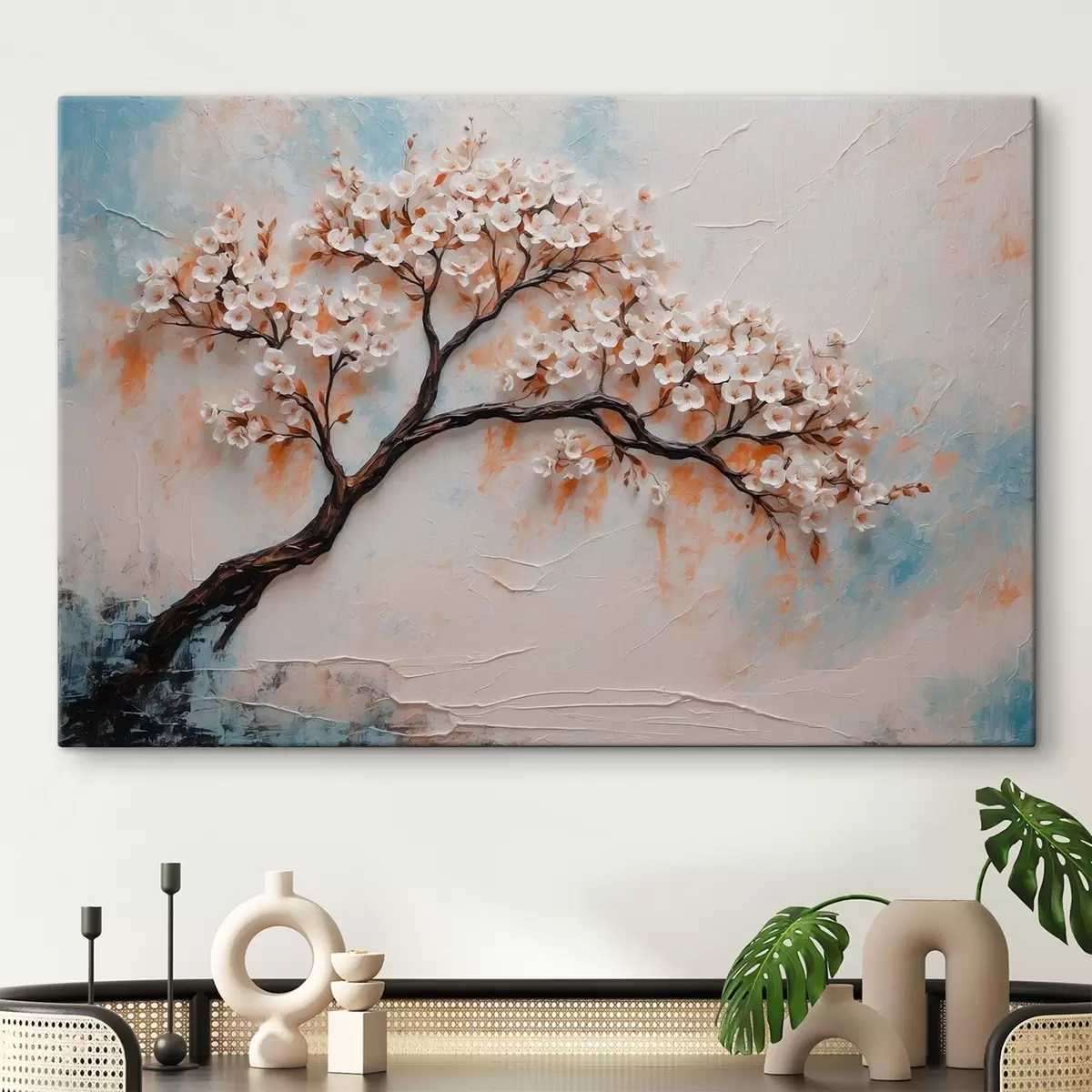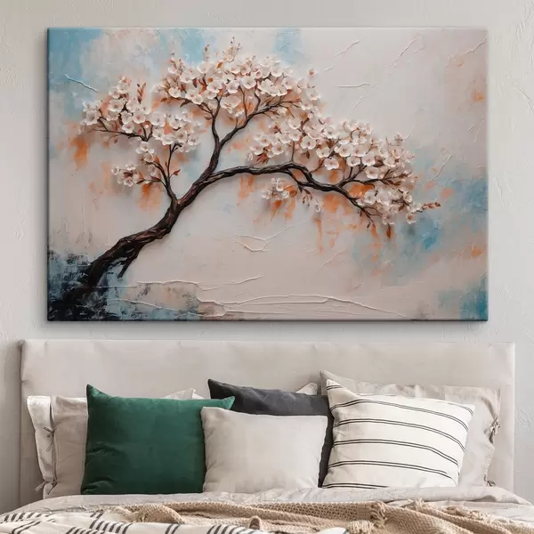 Cuadros Árbol en flor sobre fondo abstracto al óleo Nr s41032
