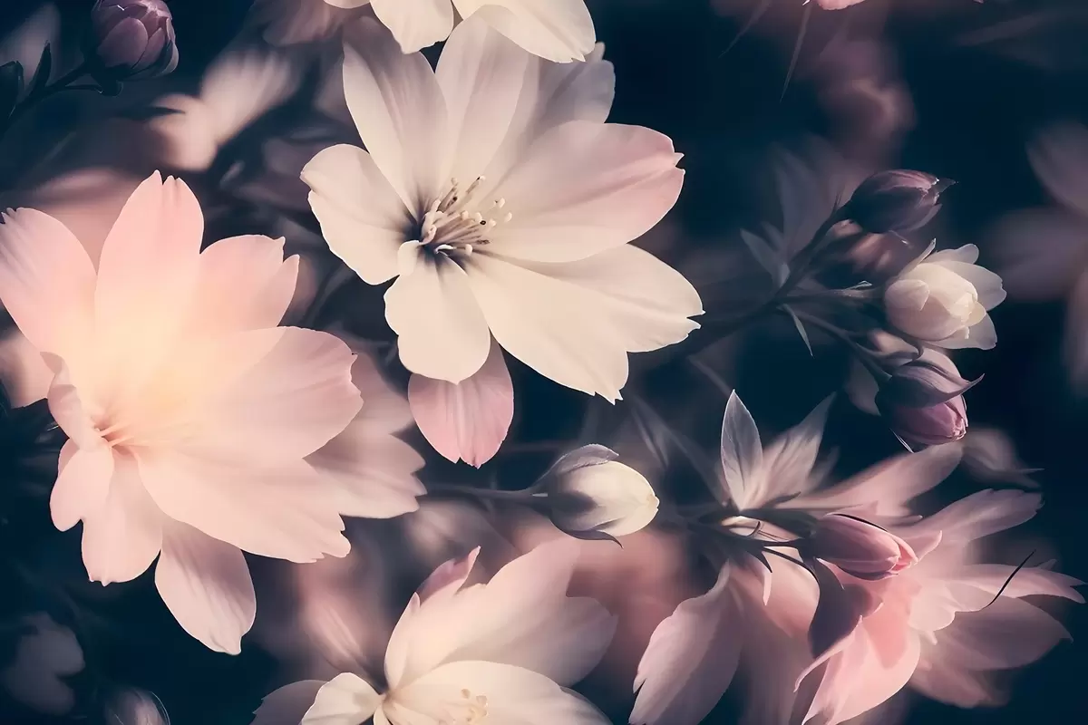 murales de pared Rosa suave y flores blancas de la luz de la vendimia con el fondo borroso s41084