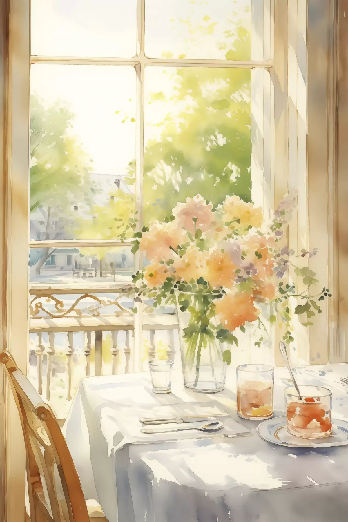 Cuadros Cena romántica, acuarela, estilo boho, flores, naturaleza Nr s41165