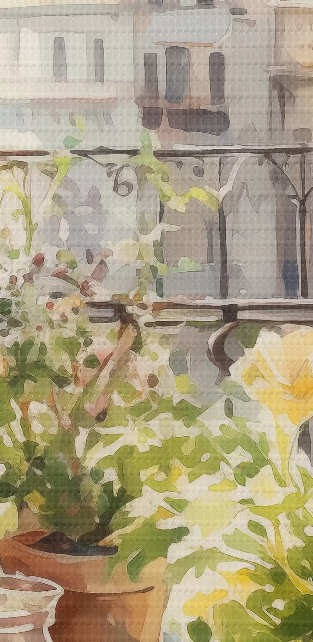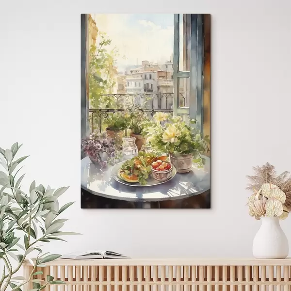 Cuadros Cena romántica con vistas a la ciudad, acuarela, floral Nr s41168