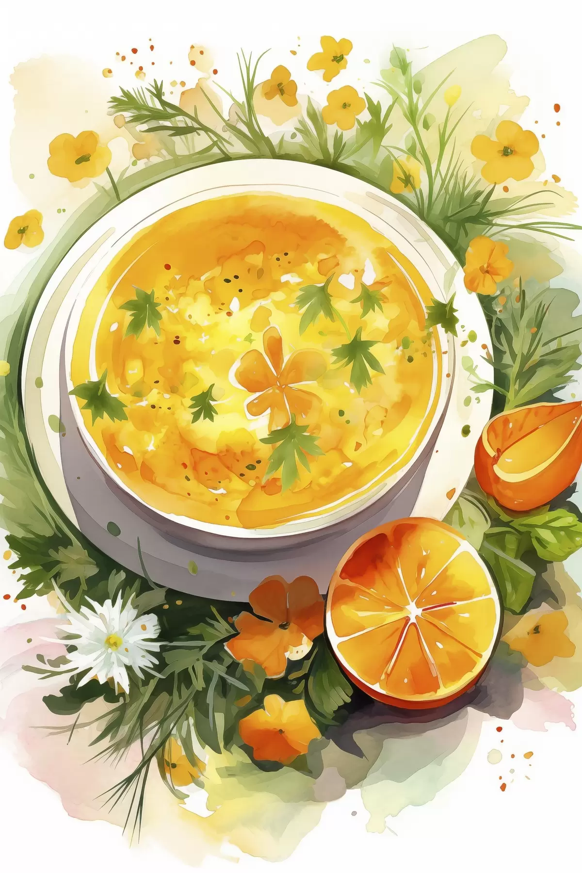 Cuadros Sopa de calabaza, acuarela, colores de otoño, naranja Nr s41170