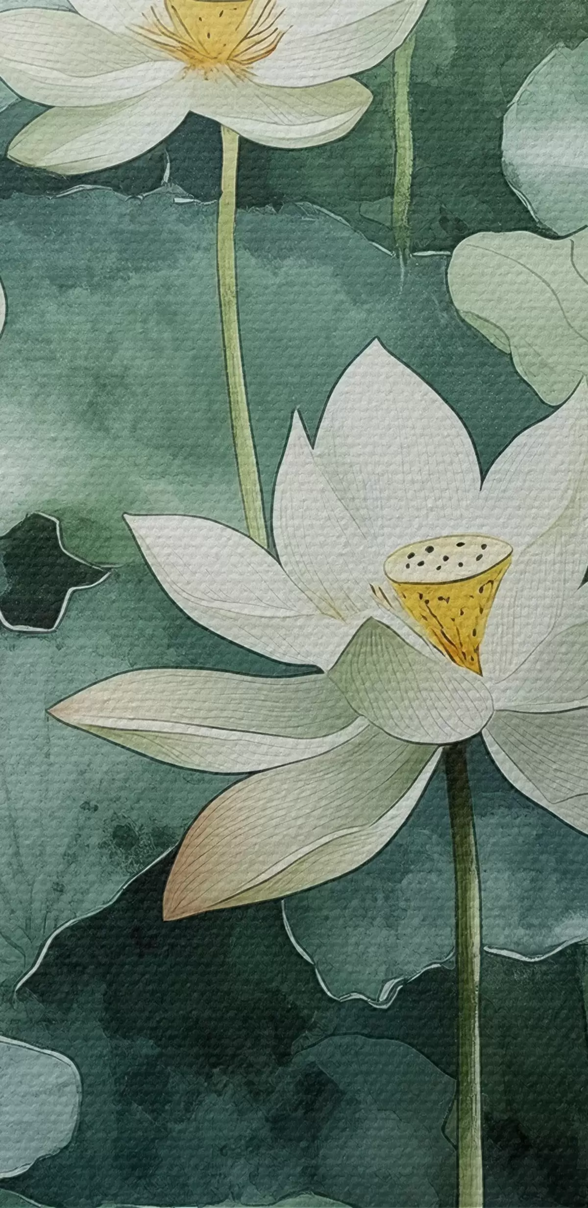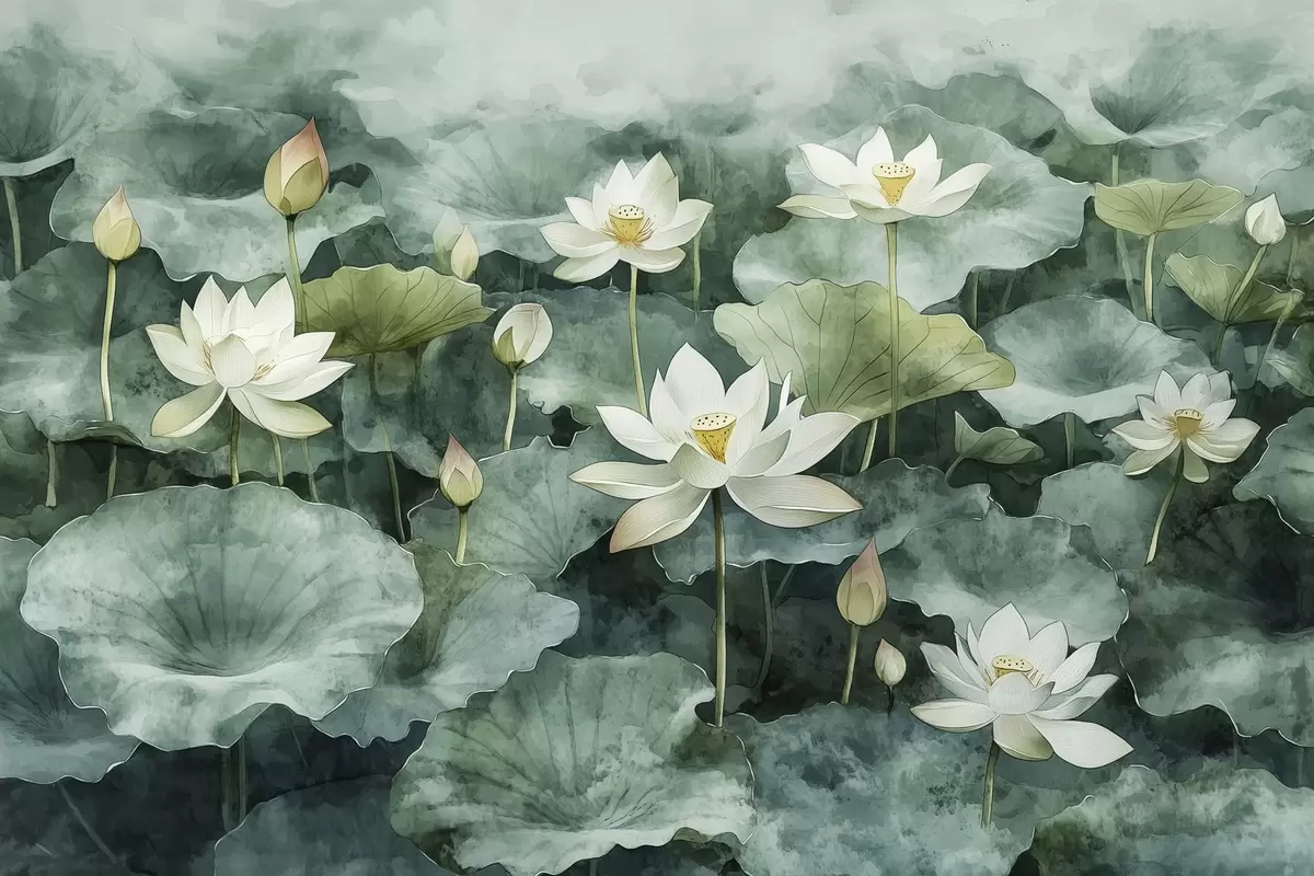 murales de pared Lotos en el estanque, acuarela, verdor s41228