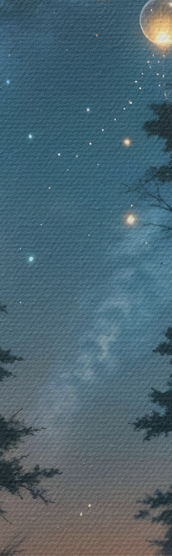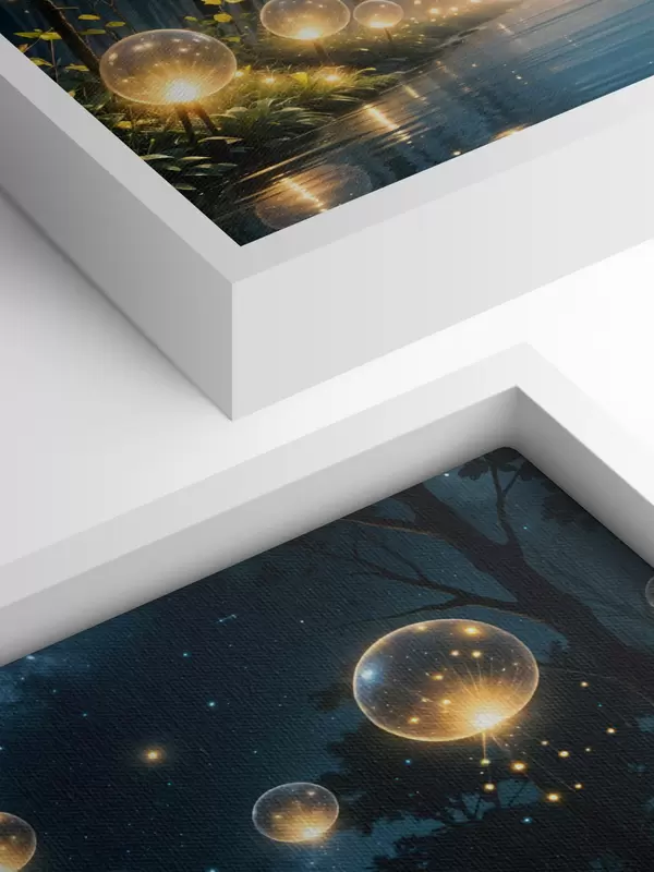 Cuadros Un bosque mágico de noche con orbes amarillos y luciérnagas flotando entre los árboles, creando una atmósfera caprichosa Nr s41259