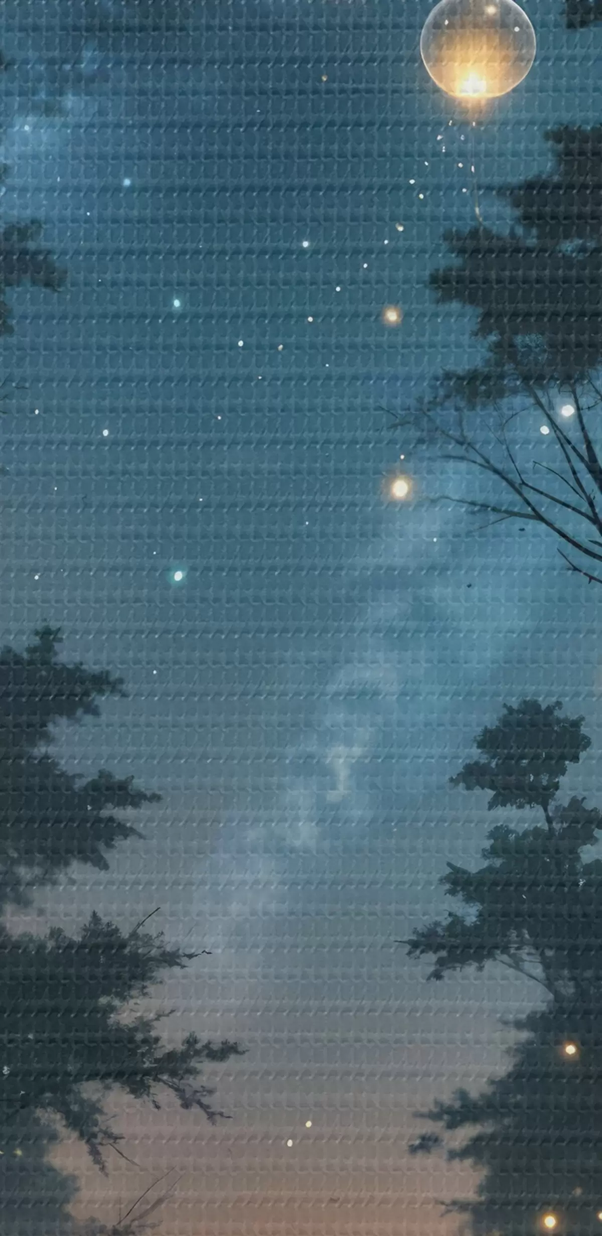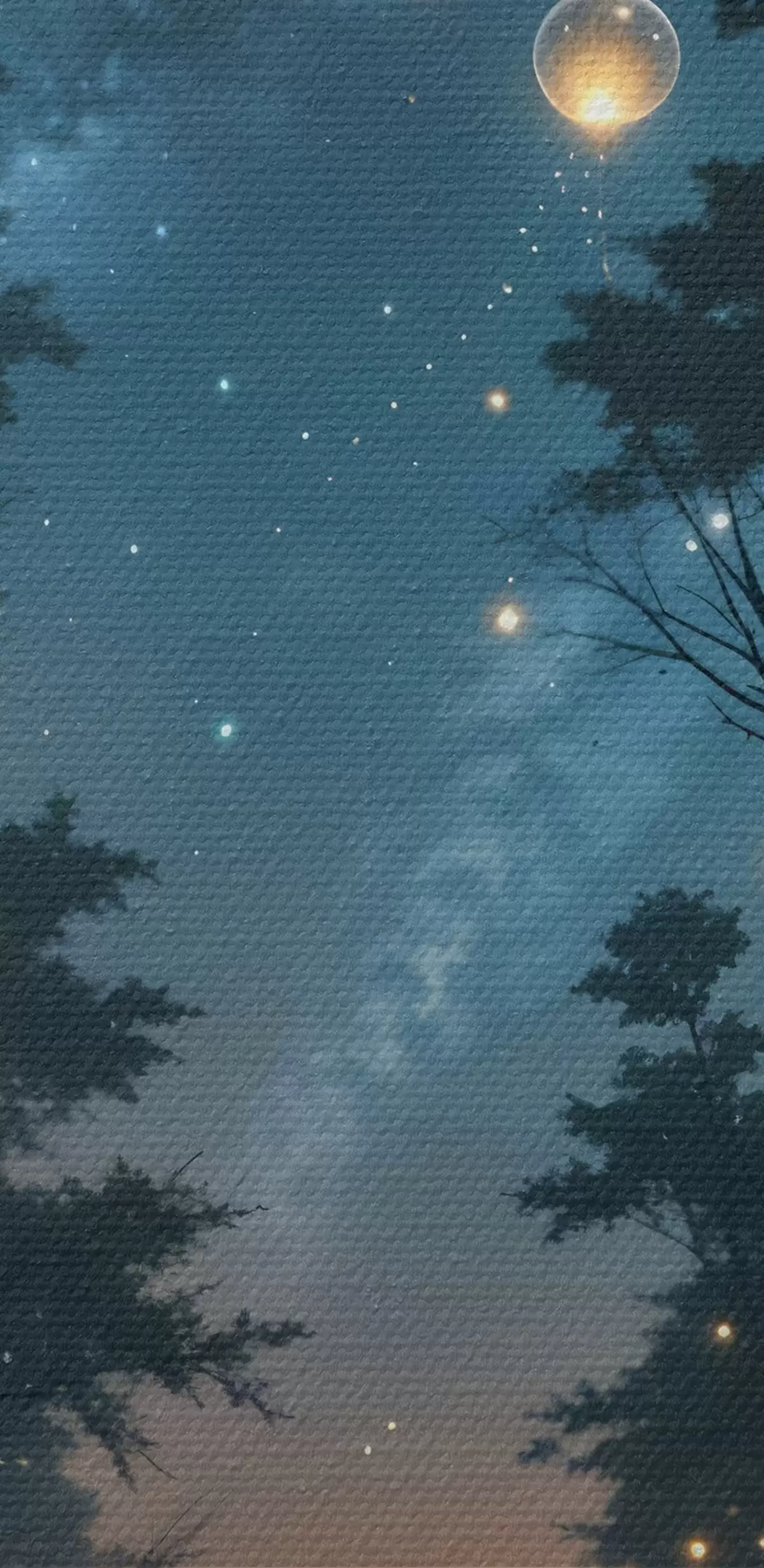 Cuadros Un bosque mágico de noche con orbes amarillos y luciérnagas flotando entre los árboles, creando una atmósfera caprichosa Nr s41259