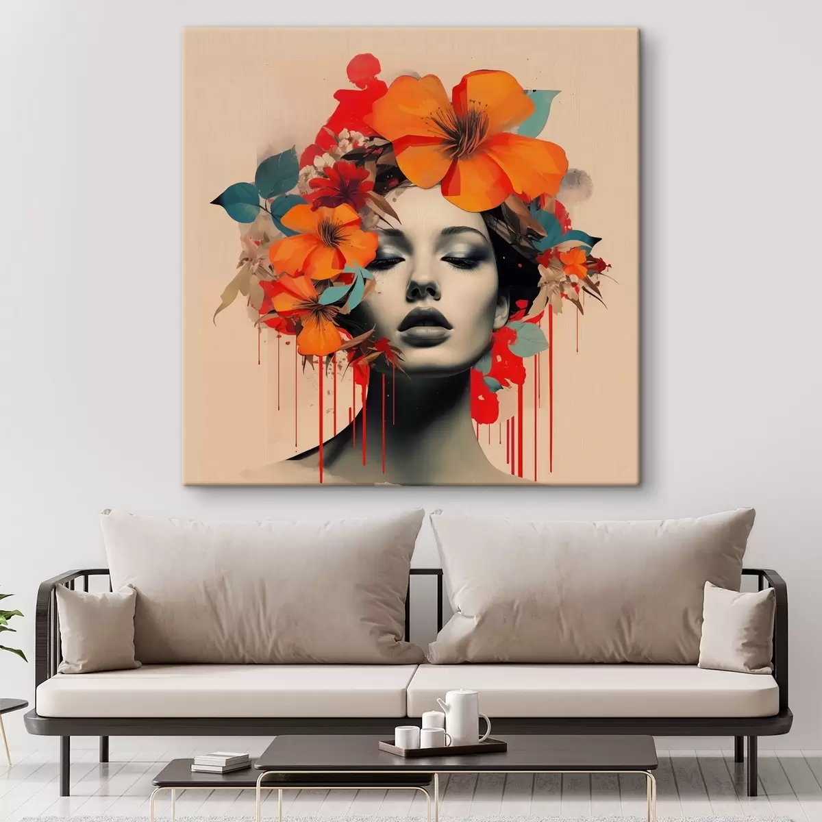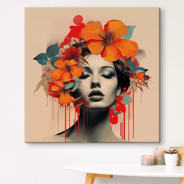 Cuadros Retrato de niña en estilo collage con flores Nr s41271