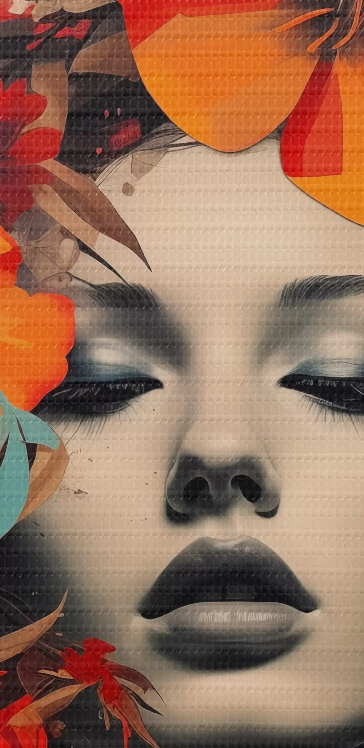 murales de pared Retrato de niña en estilo collage con flores s41271
