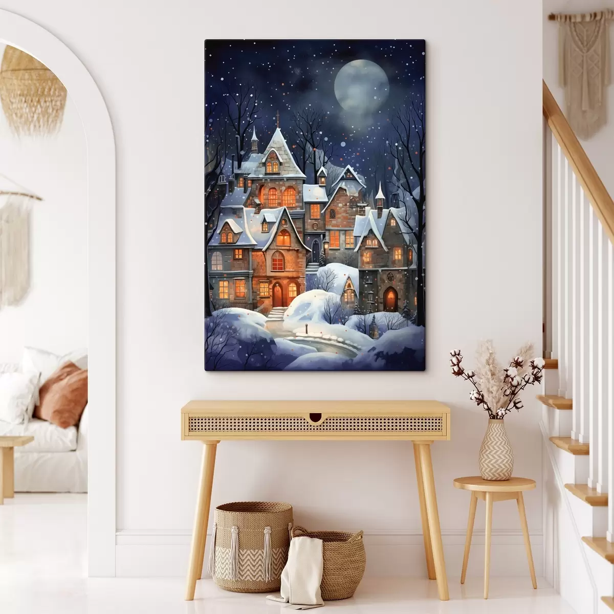 Cuadros Casas en la nieve con el cielo estrellado de fondo Nr s41276