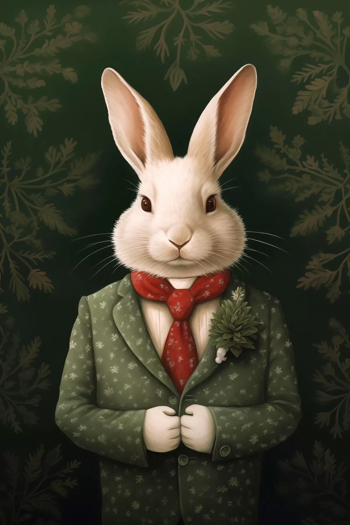 Cuadros Liebre blanca con traje verde y corbata roja ilustración Nr s41278