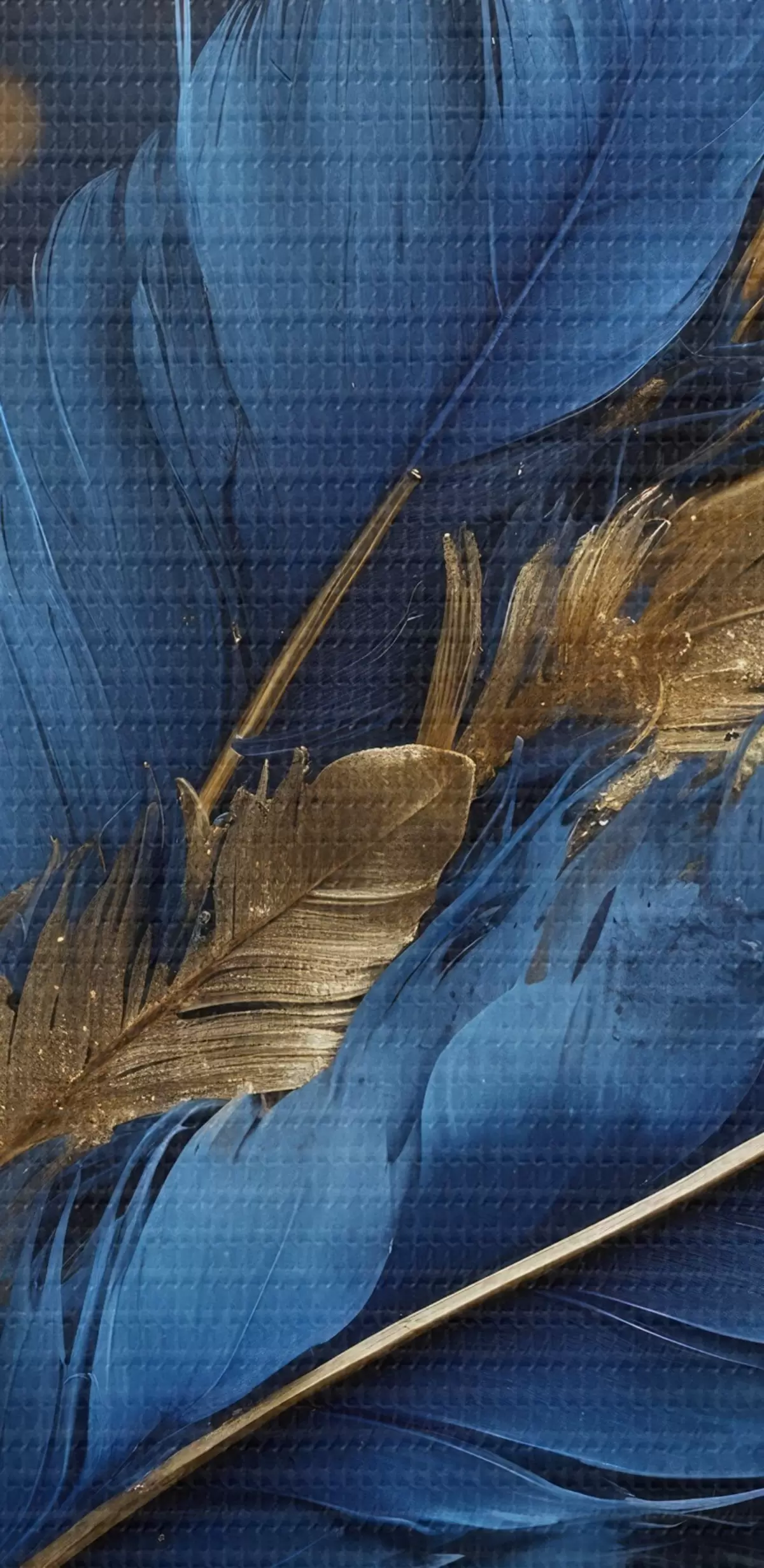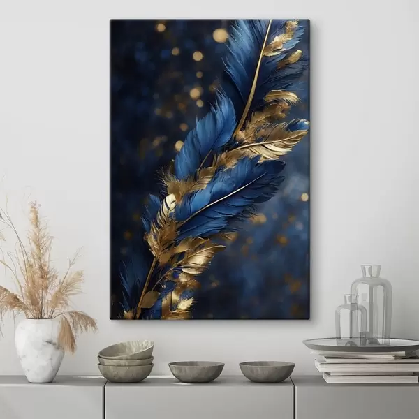 Cuadros Plumas azul-amarillo sobre fondo borroso Nr s41296