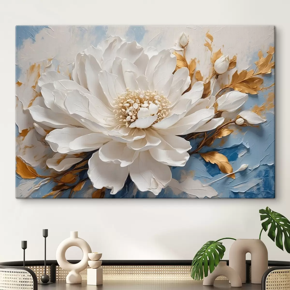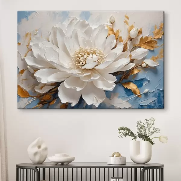 Cuadros Flor blanca sobre fondo blanco y azul Nr s41311