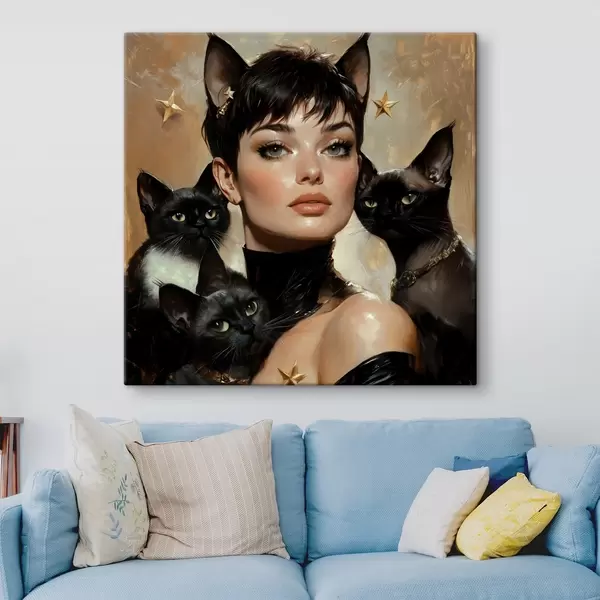Cuadros Gata con gatos negros Nr s41344