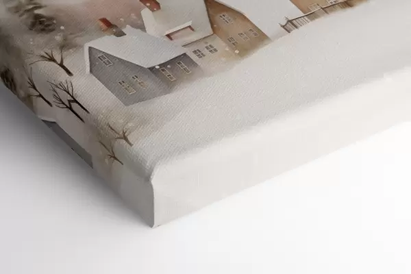 Cuadros Pueblo de invierno, acuarela, copos de nieve, colores suaves, árboles, paisaje Nr s41381