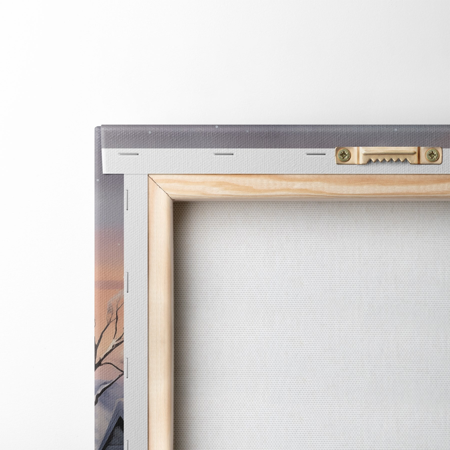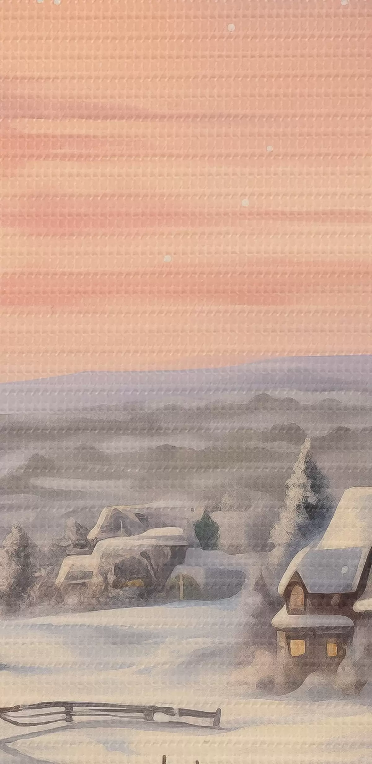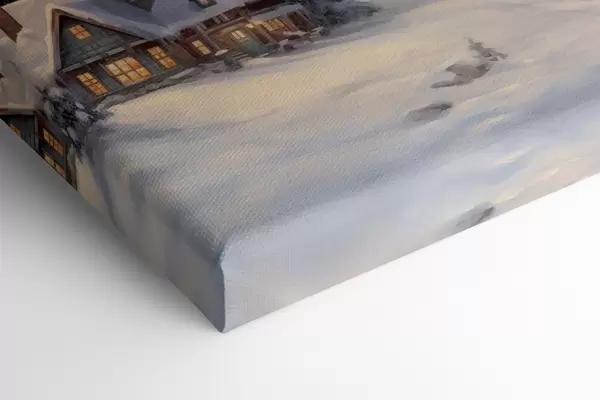 Cuadros Puesta de sol en el pueblo de invierno, rústico, acuarela, copos de nieve Nr s41386