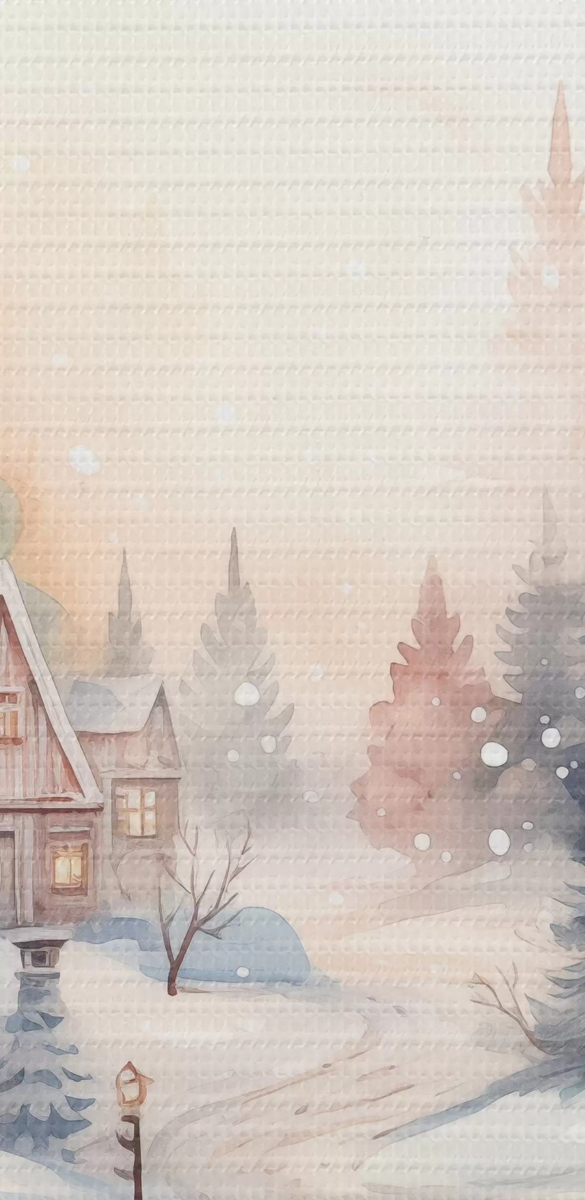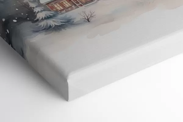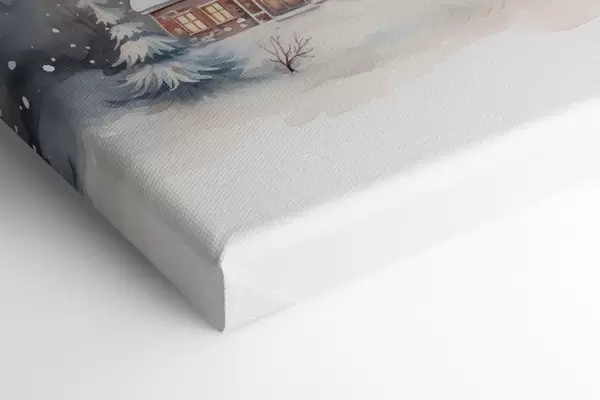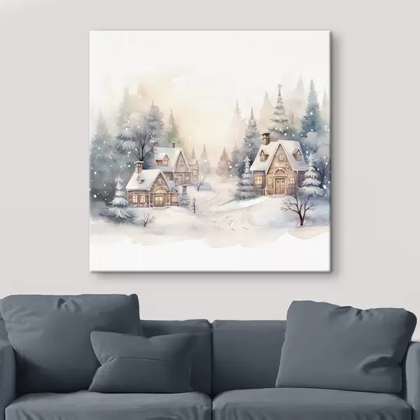 Cuadros Paisaje de invierno, bosque de pinos, hermosas casas, acuarela, susnet Nr s41390